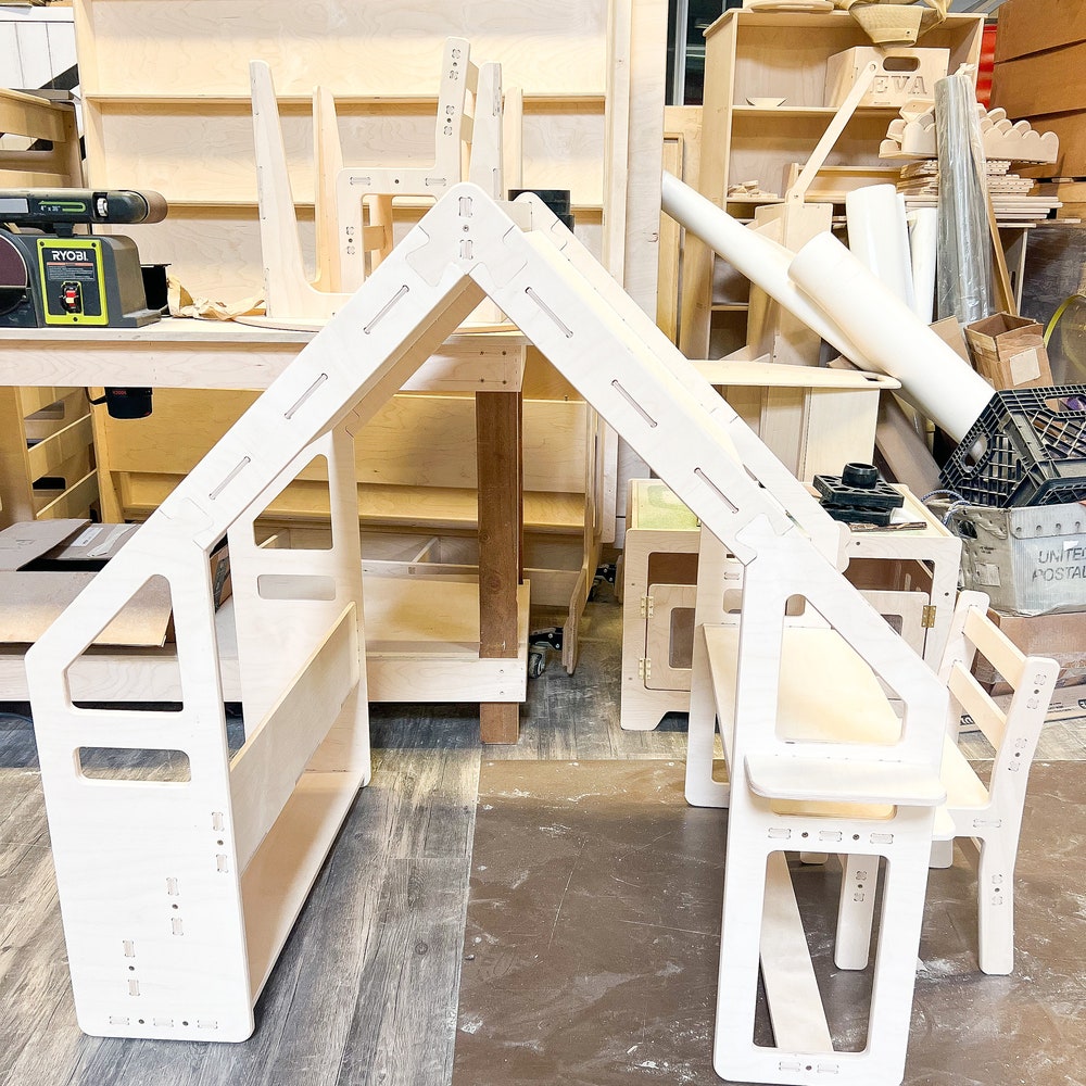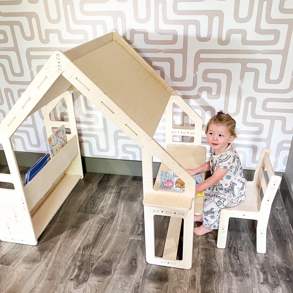 WALLY- Montessori Bookshelf / Kids Desk / Playhouse Combo- Montessori Shelf- Toddler Furniture- Indoor Play Tent – Kids Hideout- Playground!