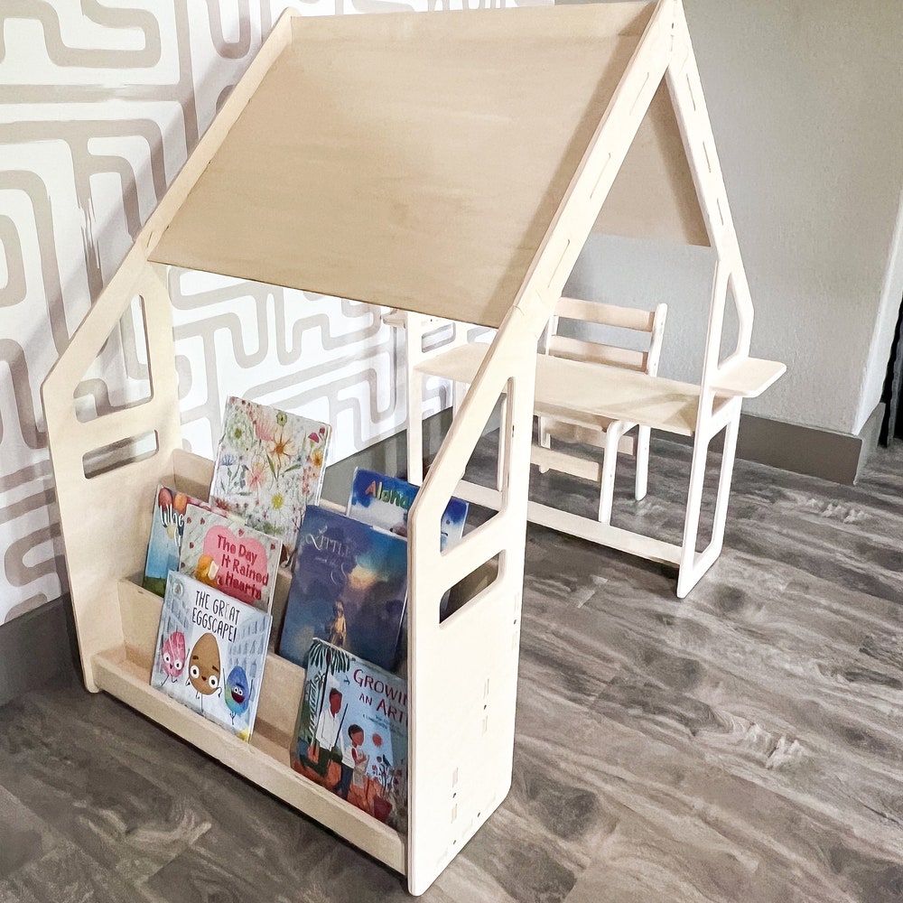 Toddler hideout/playhouse meets book storage meets toddler desk! The all in one combo of your dreams! ★ Very Solid & Strong design | Made from 1/2″ USA Baltic Birch plywood ★ This product comes pre-sanded. ★ The wood is untreated and beautiful left as-is, but can also be stained, painted or sealed should you chose […]