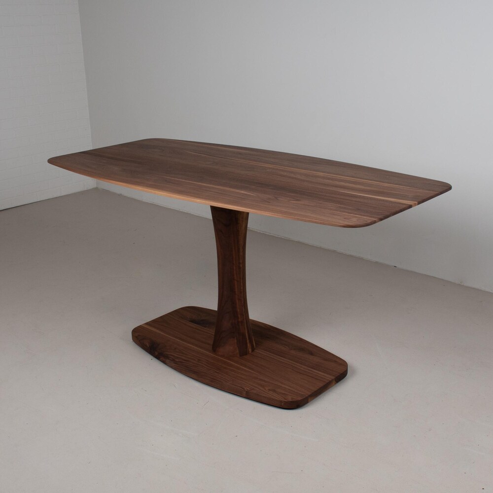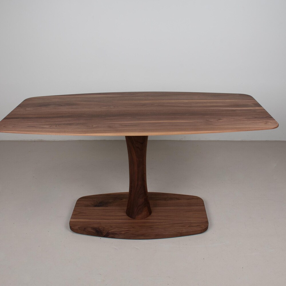 Walnut Accent Table, Squoval Pedestal Table, Small Kitchen Dining Table, Banquette Table, Small Boat Shaped Wood Table Made of Walnut