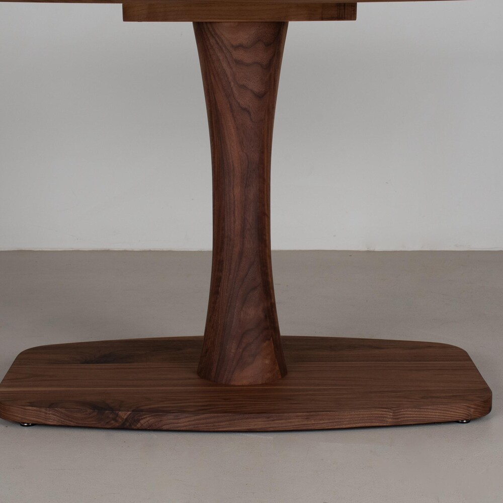 This small walnut pedestal table makes a great accent table in the living room or a small dining table in the kitchen. The squoval shape has rounded sides which gives the table a bunch of style. And it sits on an elegant pedestal base that leaves lots of room for legs under the table if you’re eating at it. We build every table to order so there are many ways to make this table perfect for you.