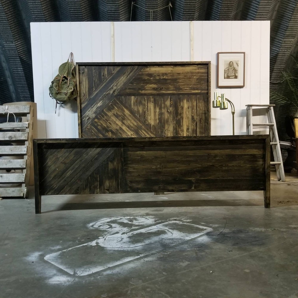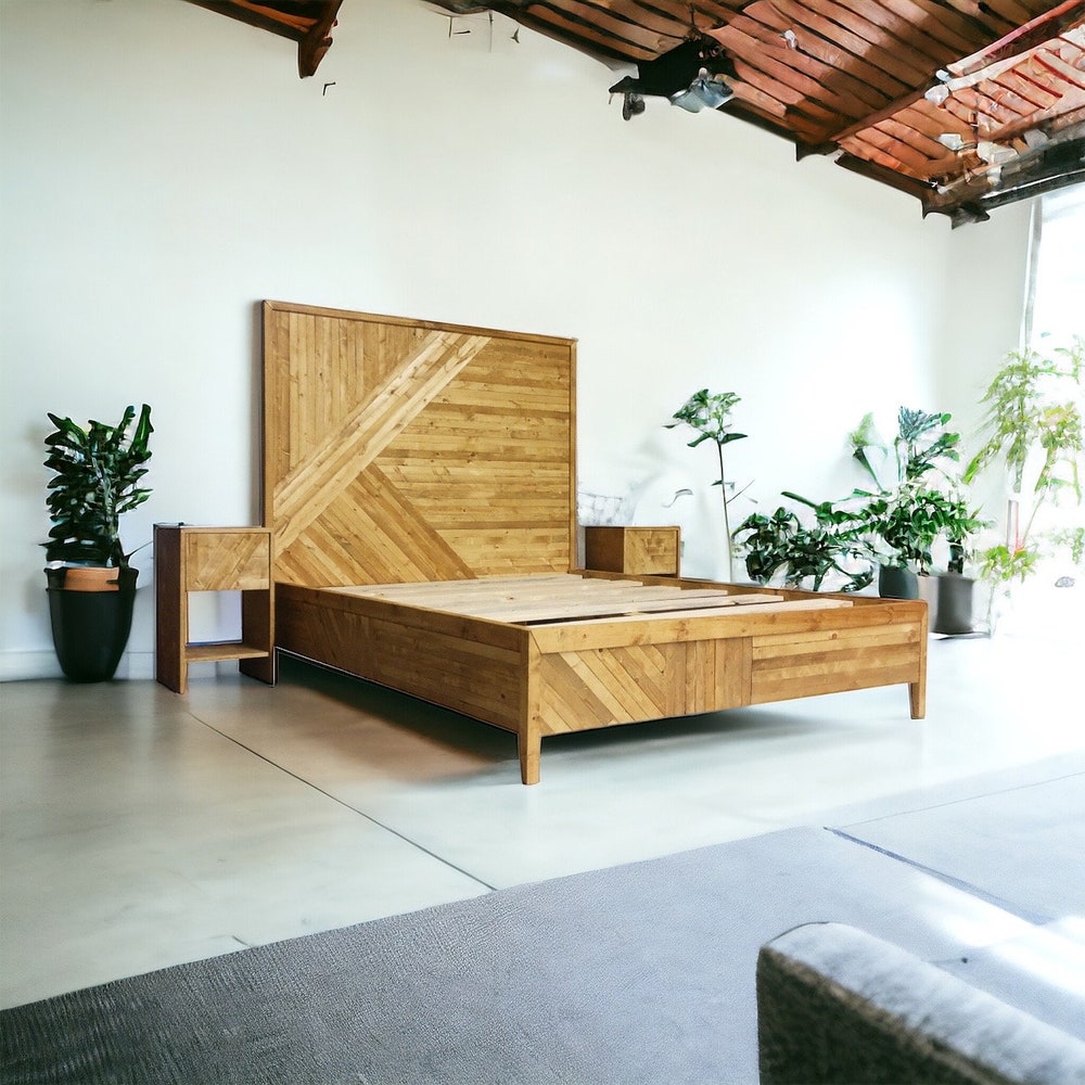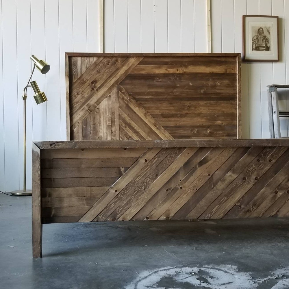Bed frame Queen for House Warming Gift – King Bed Frame for Farmhouse Decor – Chevron White Oak Bed Frame – Handmade Furniture Platform Bed