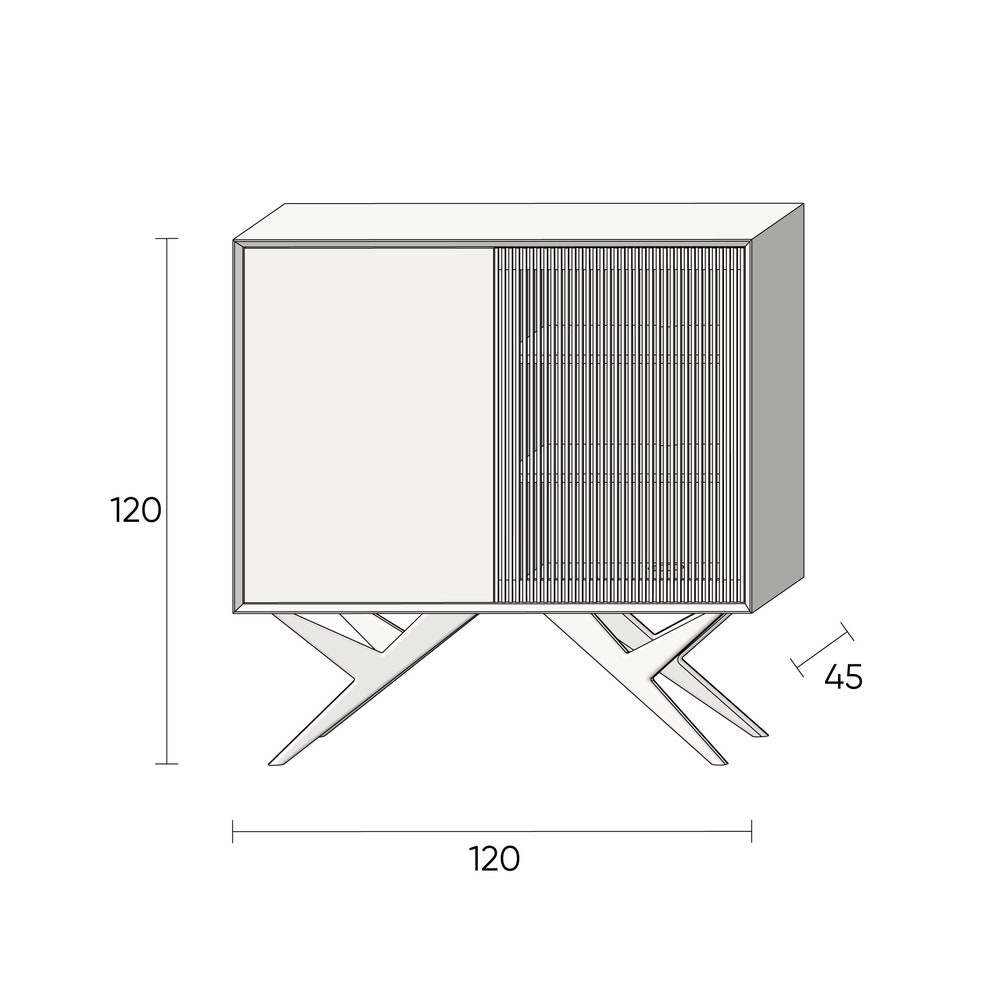 Beautiful walnut buffet with two doors and black, organic shape base in mid century modern style.The right door is slatted. Perfect for dining room.Cabinet, made of solid American walnut wood and wood covered with natural American walnut veneer. Two adjustable shelfs behind each door. Cable hole behind slatted door.Handmade in Poland. Dimensions:width: 120 cmdepth: 45 […]