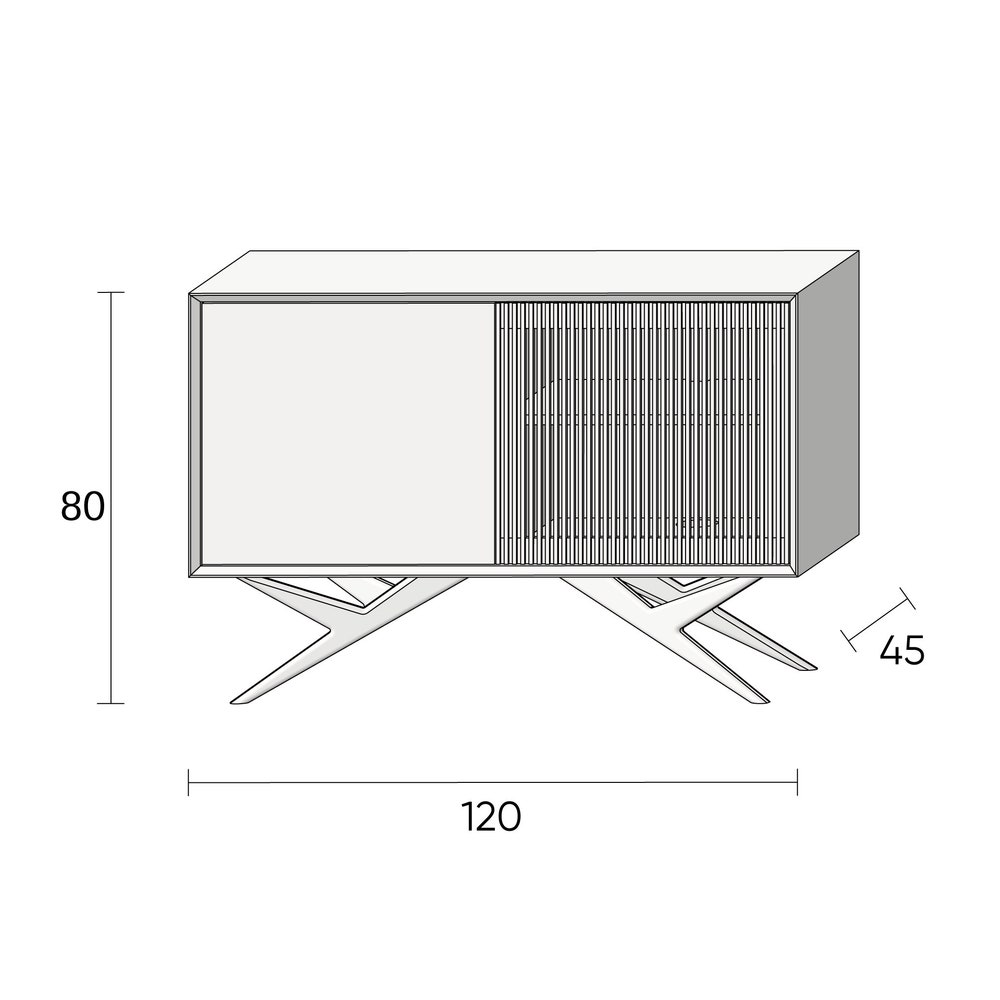 Beautiful walnut cabinet with two doors and black, organic shape base in mid century modern style.The right door is slatted – perfect as TV stand.Cabinet made of solid American walnut wood and wood covered with natural American walnut veneer. One adjustable shelf behind each door. Cable hole behind slatted door.Handmade in Poland. Dimensions:width: 120 cmdepth: […]