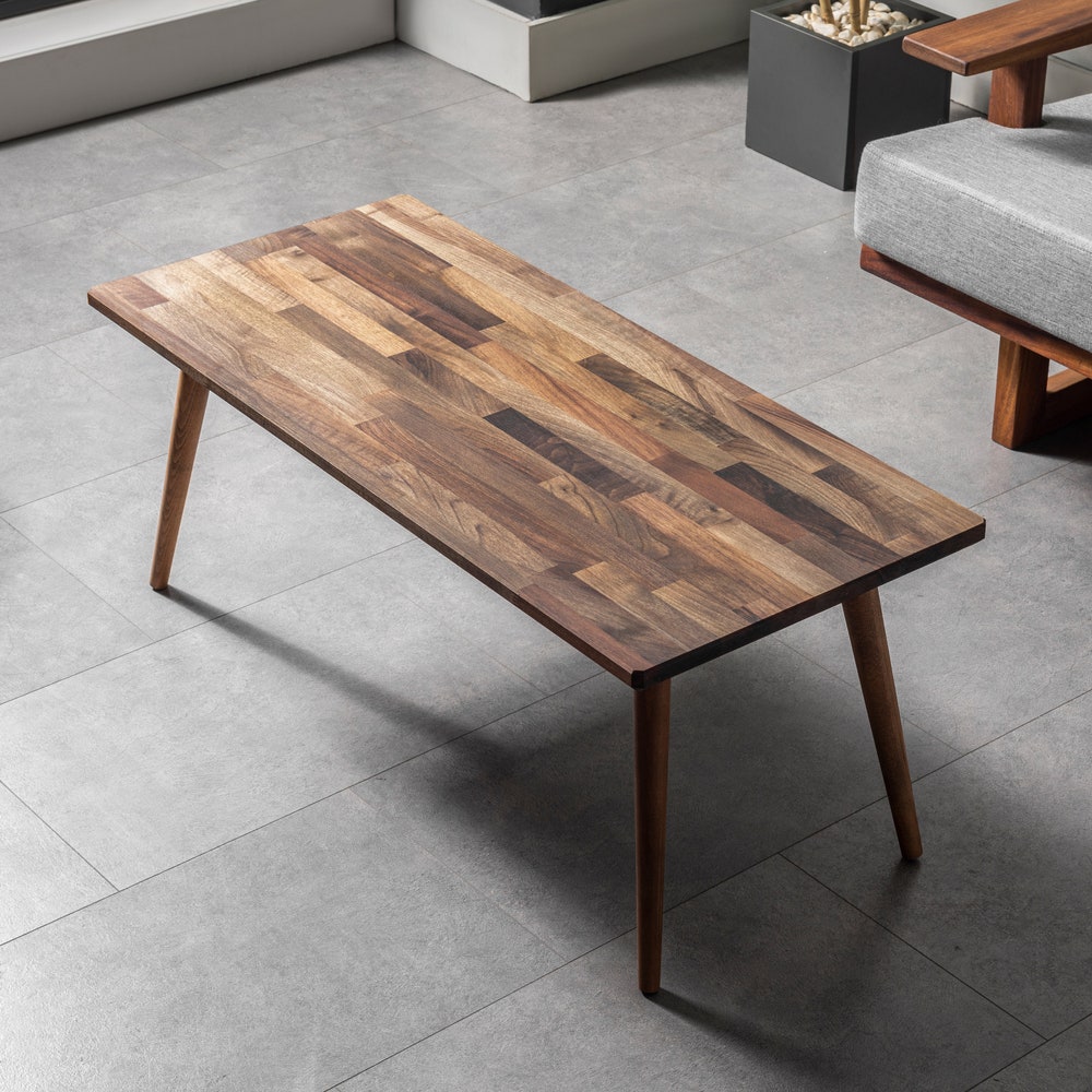 Walnut Coffee Table, Classic Wooden Coffee Table, Mid Century Modern Style Rectangle Coffee Table, Solid Walnut Wood, Living Room Furniture