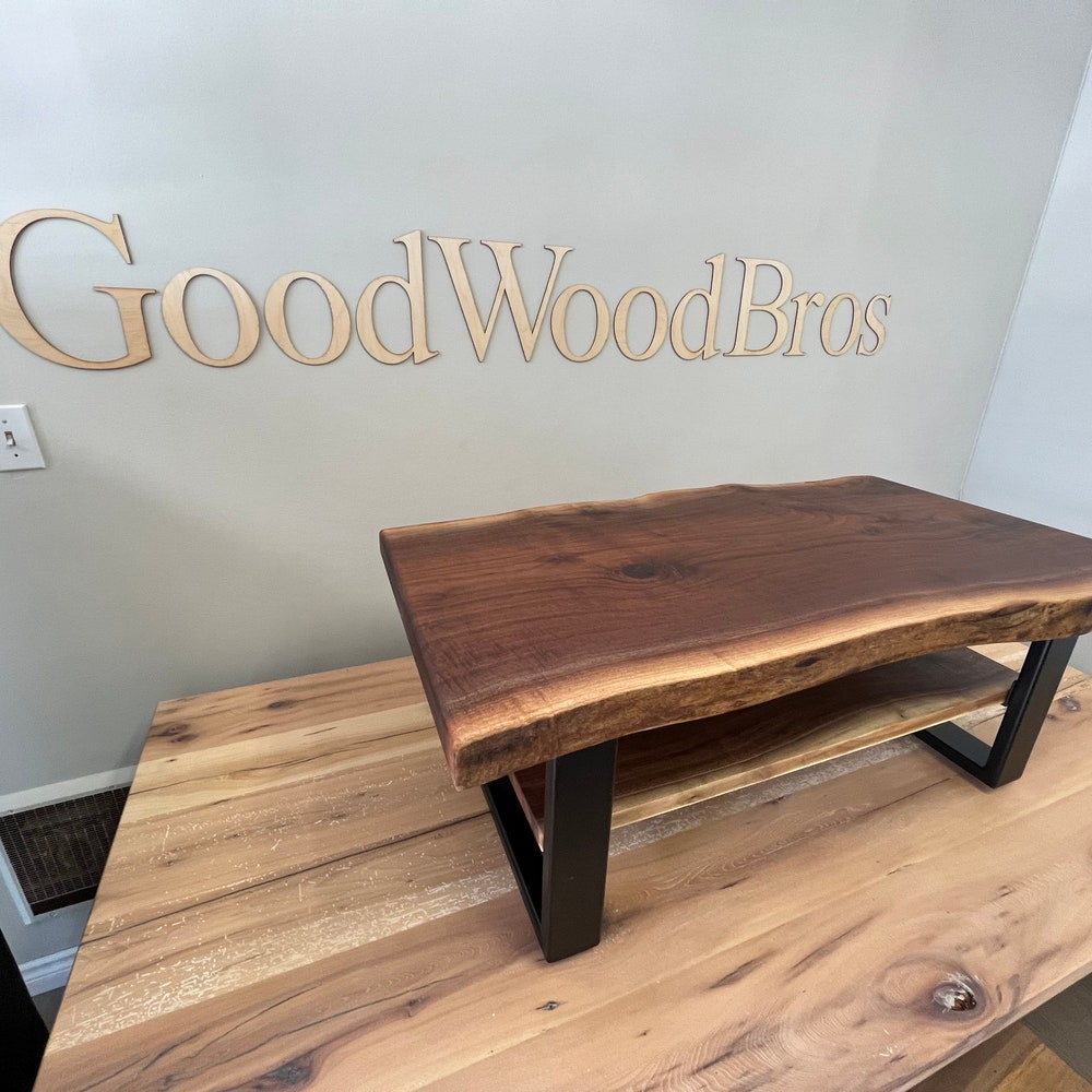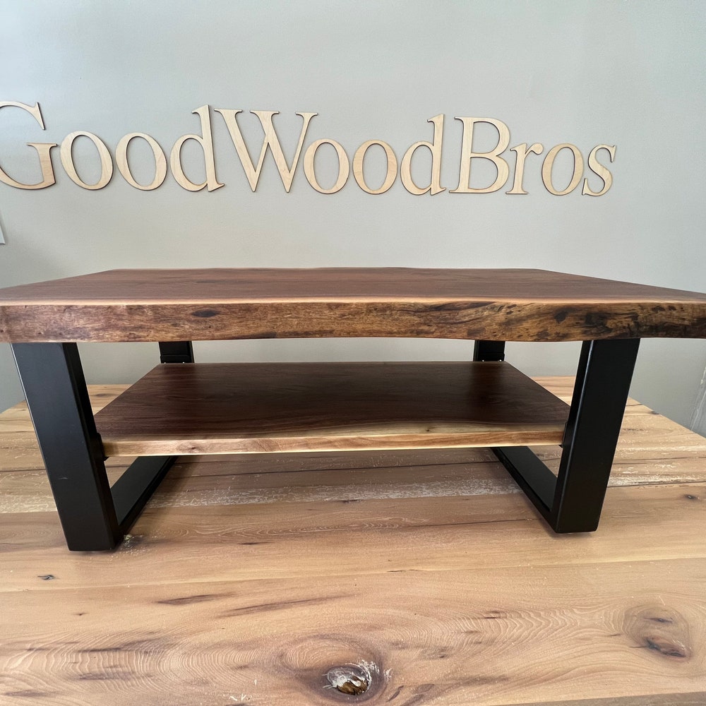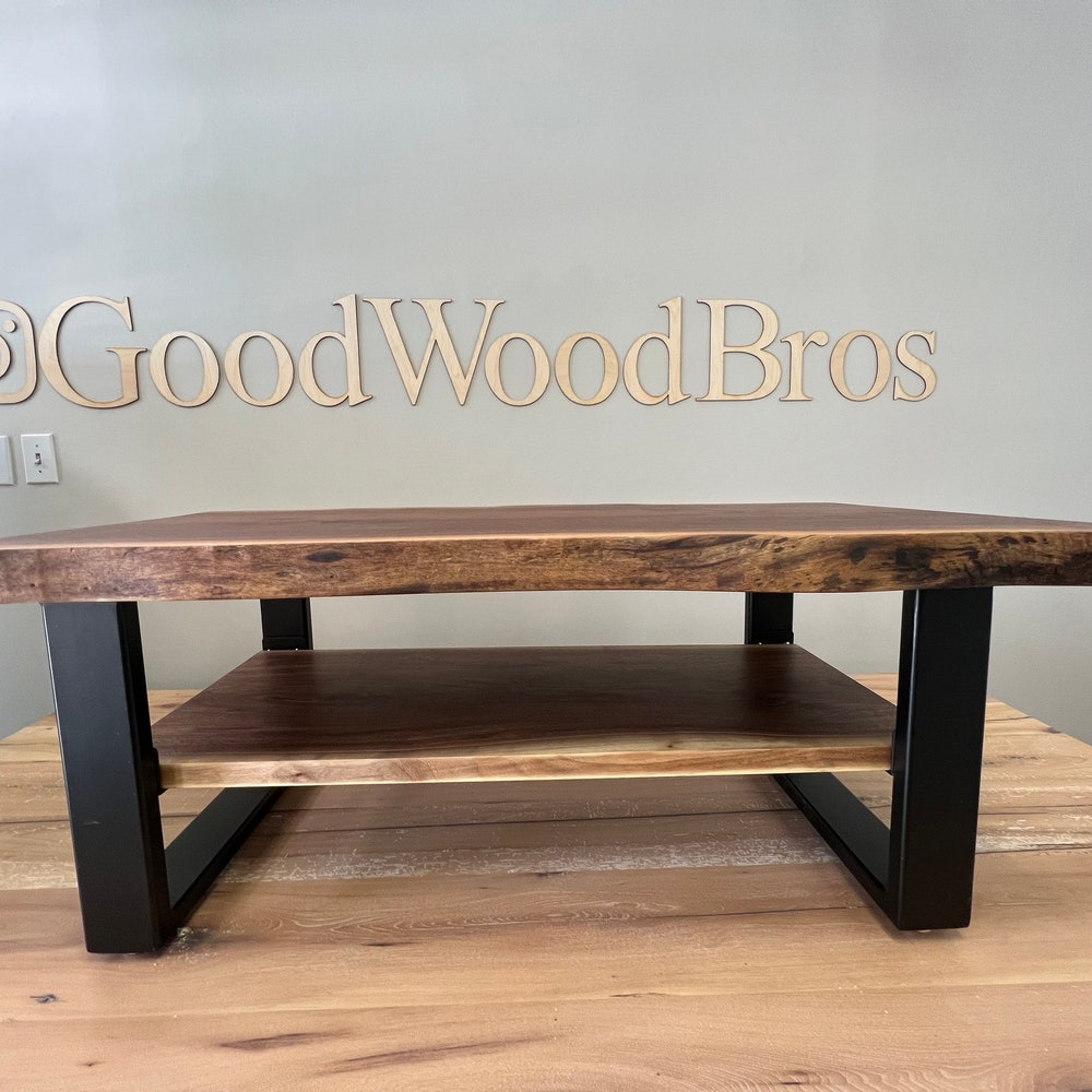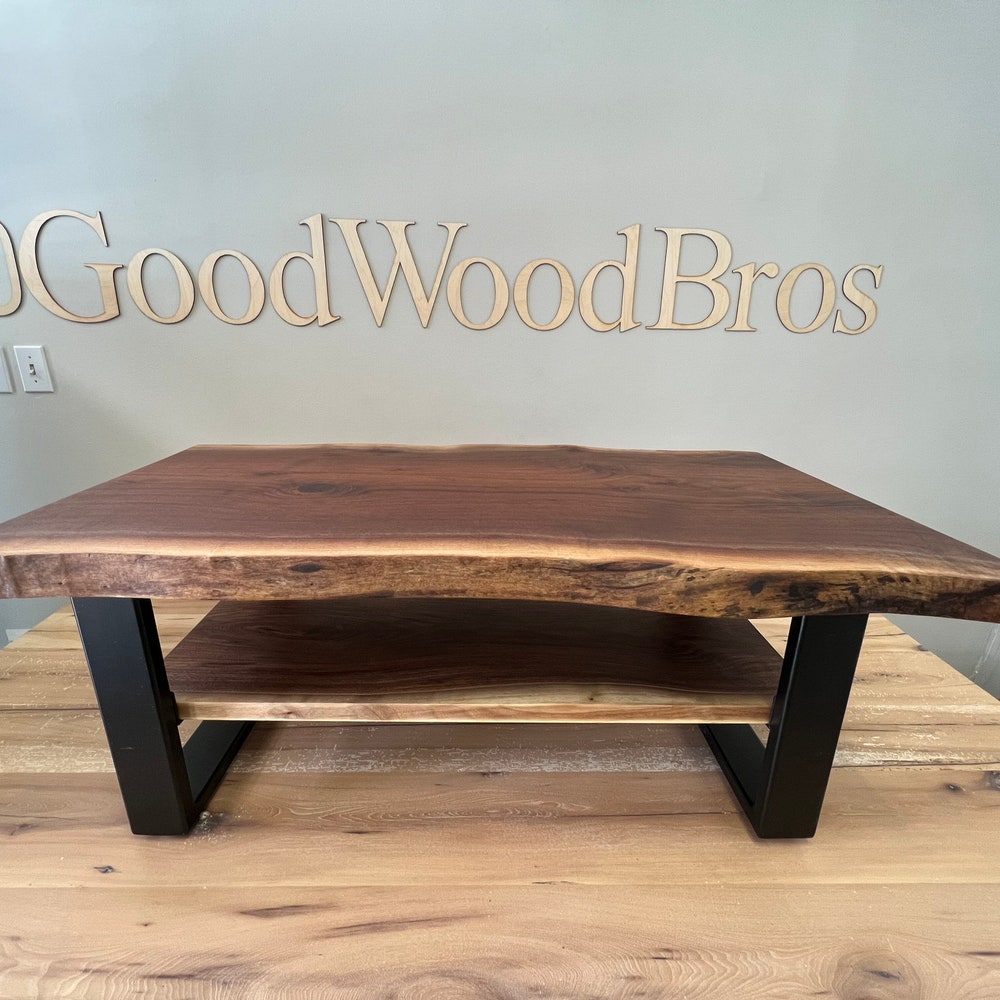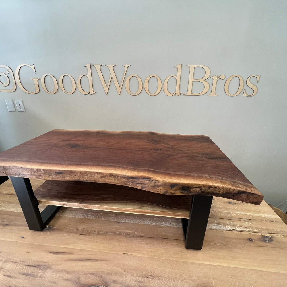 Good Wood Brothers Custom Made Black Walnut Live Edge Coffee Tables are carefully handcrafted and make for a beautiful centrepiece in any living room or office space. The live edge look and feel offers you a style that fills a room with elegance, warmth and comfort.