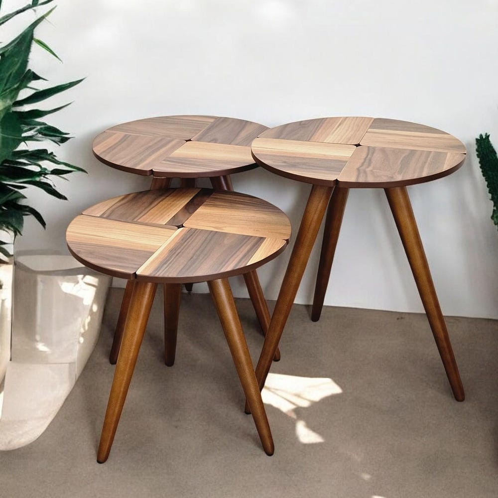 Walnut Coffee Tables Set of 3 – Mid Century Modern Nesting Side Tables, Handmade Living Room Furniture, Perfect Housewarming Gift