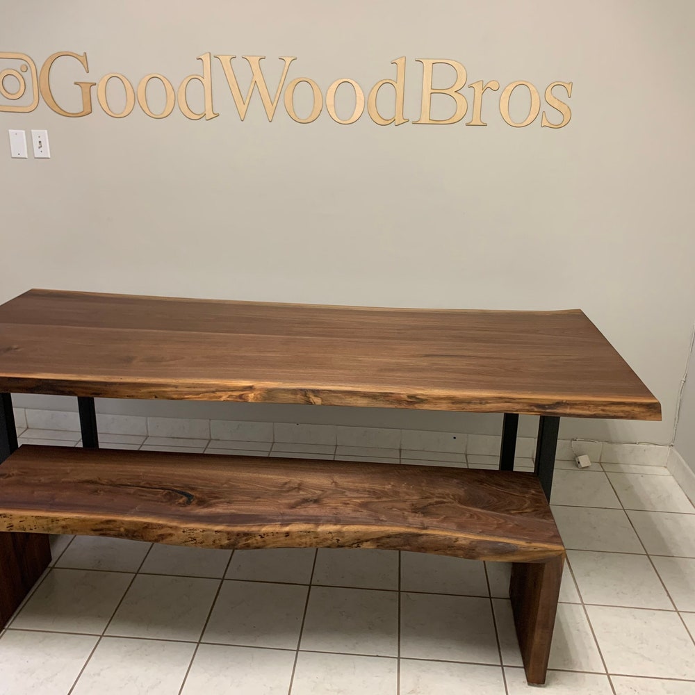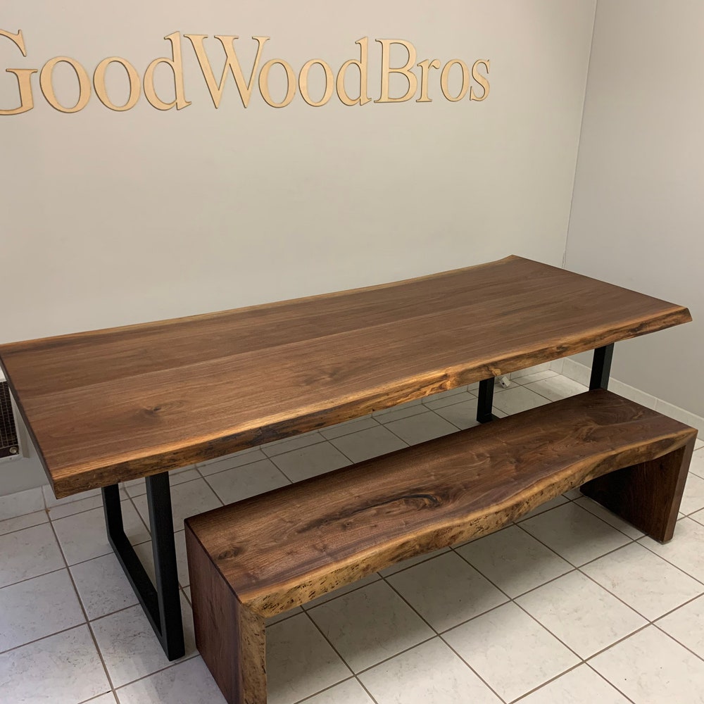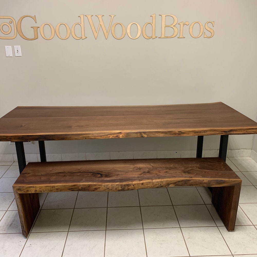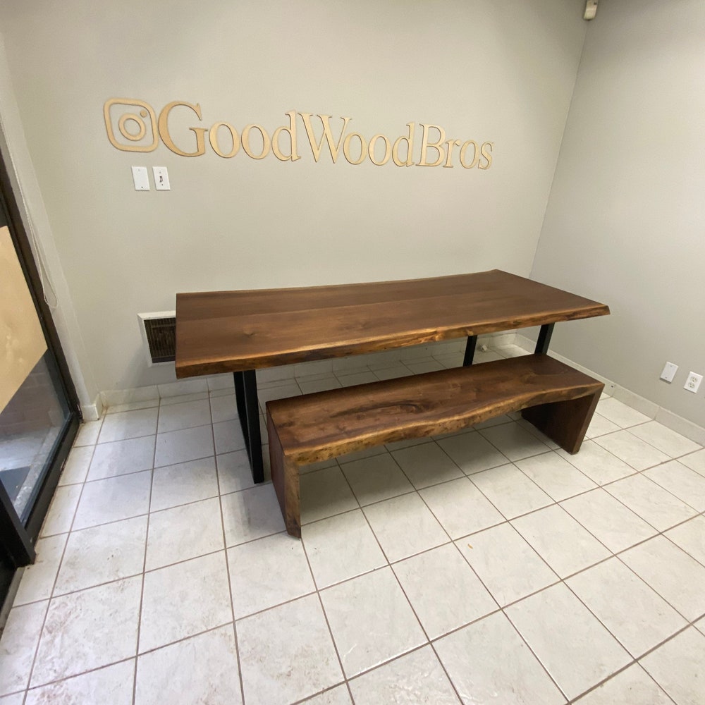 GoodWoodBros Custom Made Walnut Dining Table and Bench set will be a prized focal point for your dining room or kitchen. Our dining table and bench is made of solid Walnut along with legs of your choice, we promise you a table that you will love and guarantee you a quality that will last forever!