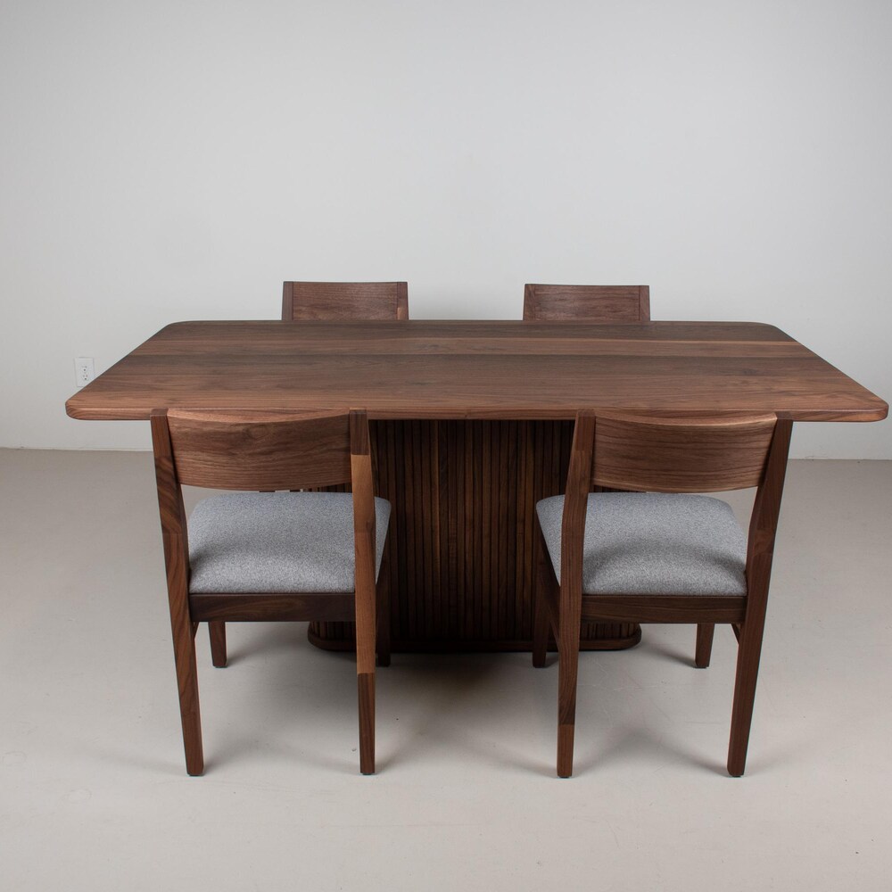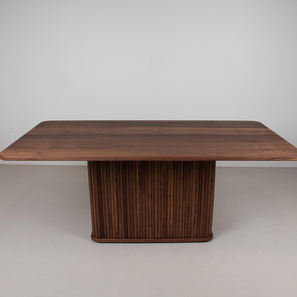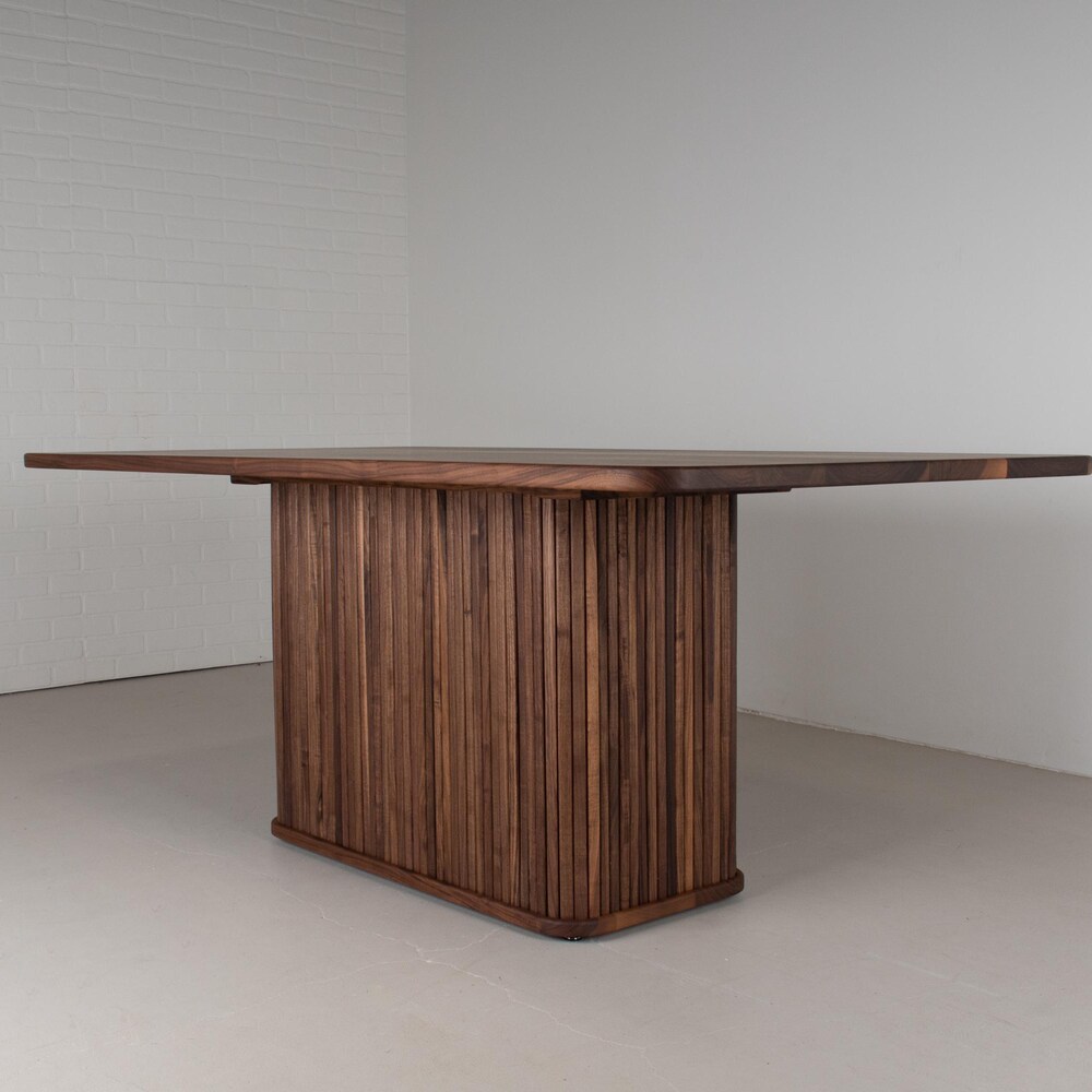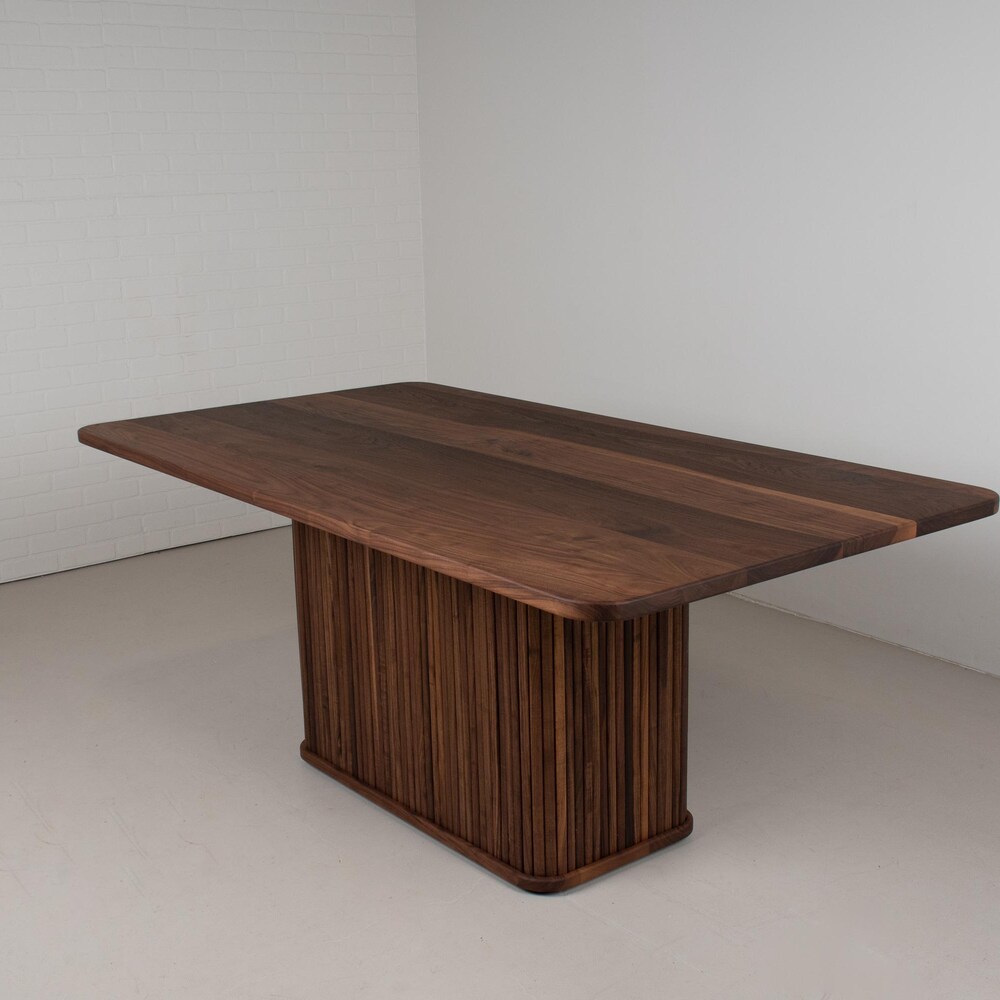 Walnut Dining Table on a Fluted Pedestal Base, Rectangle Table on Reeded Base, Walnut Pedestal Table, Solid Wood Pedestal Dining Table