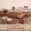 * The table we photographed is 42” x 96” which seats 8-12 people