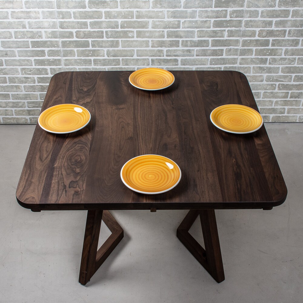 Walnut Extension Table, Square Dining Table with Extenders, Extendable Walnut Dining Table in Blackened Walnut, 42 Inch Square Walnut Table