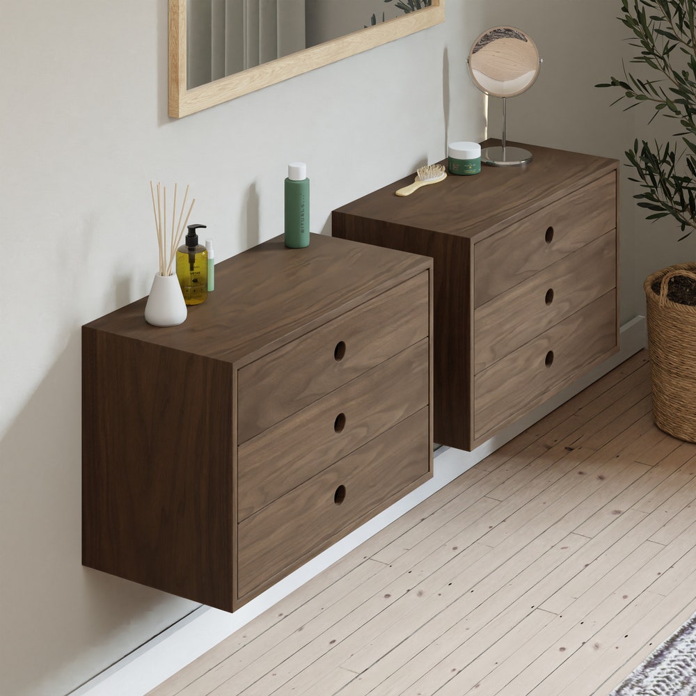 An oversized version of our bestselling nightstand, this floating Dresser is expertly built from solid Walnut grown, milled and built domestically.