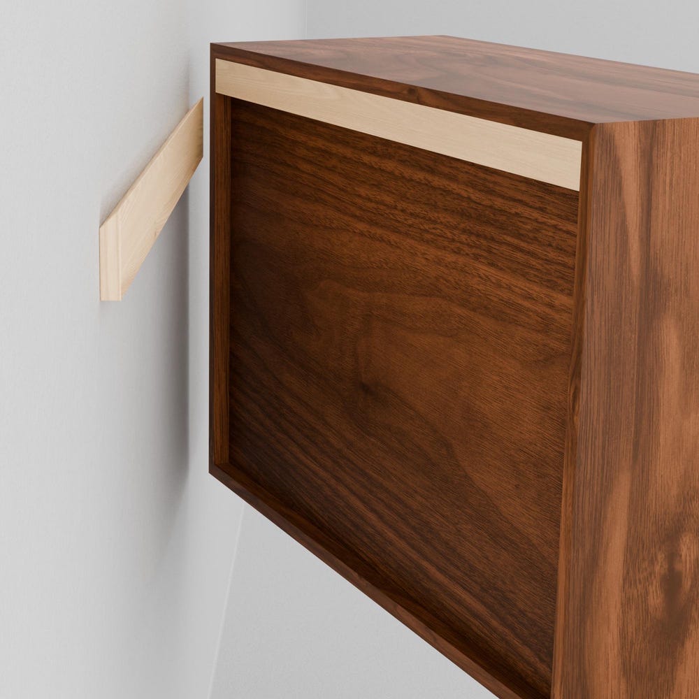 Handmade by us in Portland Maine!An oversized version of our bestselling nightstand, this floating Dresser is expertly built from solid Walnut grown, milled and built domestically.Available in 4 sizes at checkout (or contact us for custom sizing), this piece is a handsome way to organize and de-clutter any space. Drawers are made from solid Hard […]