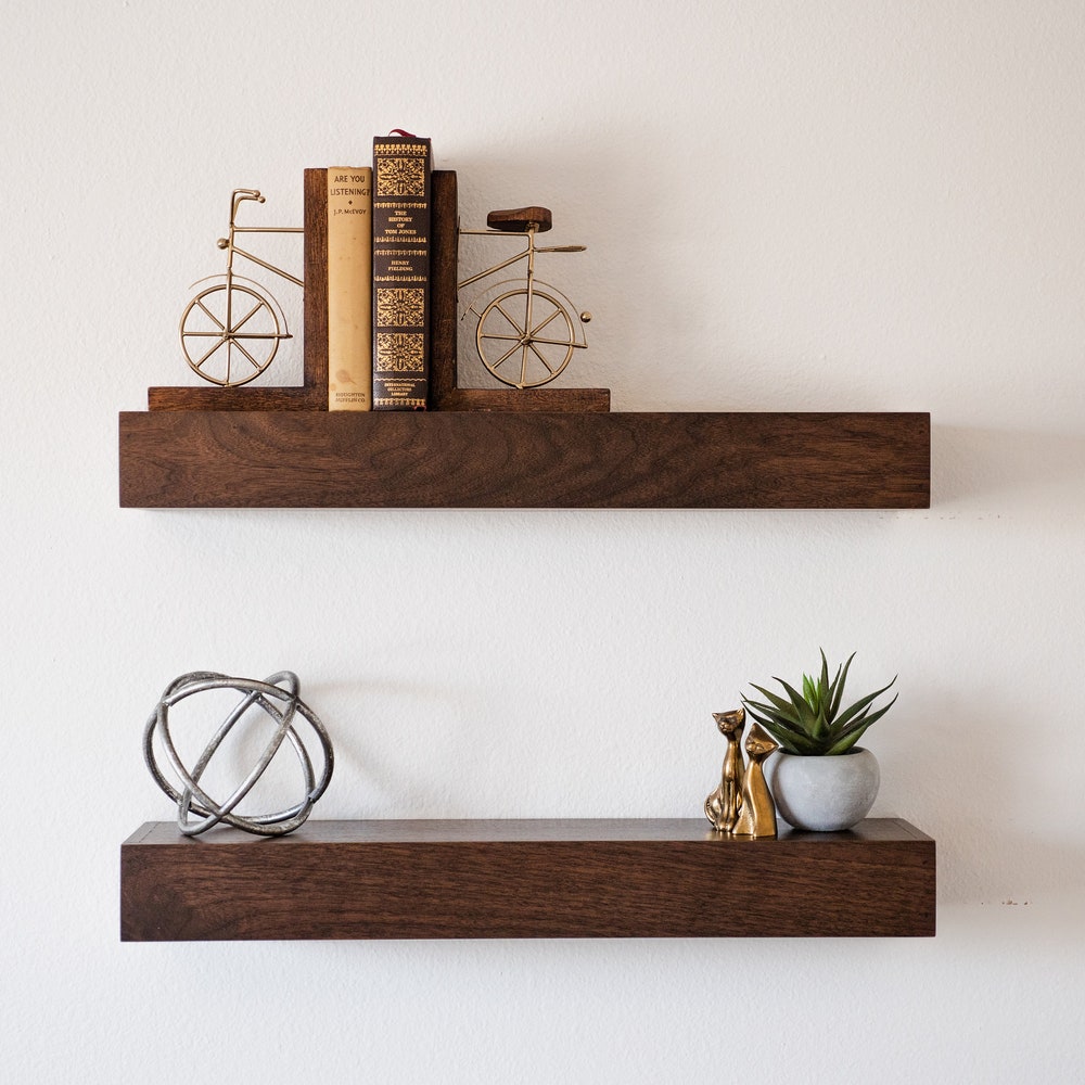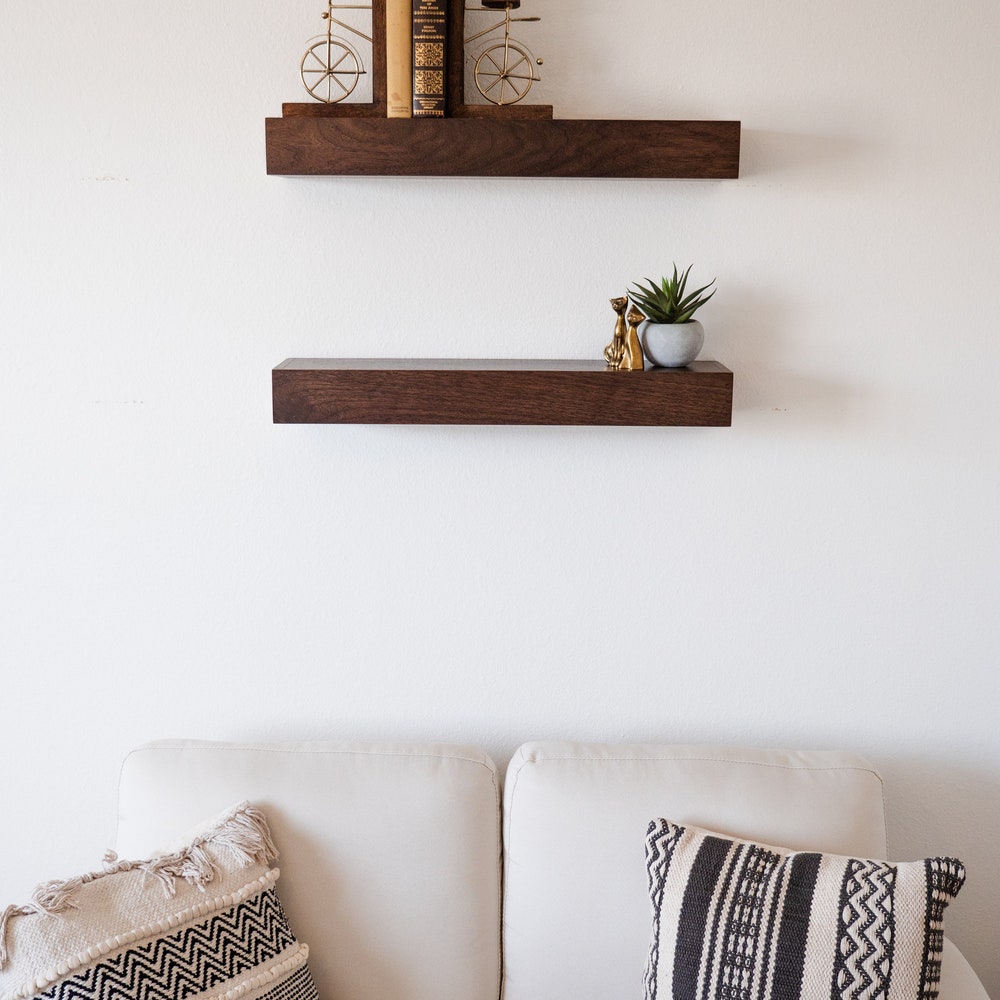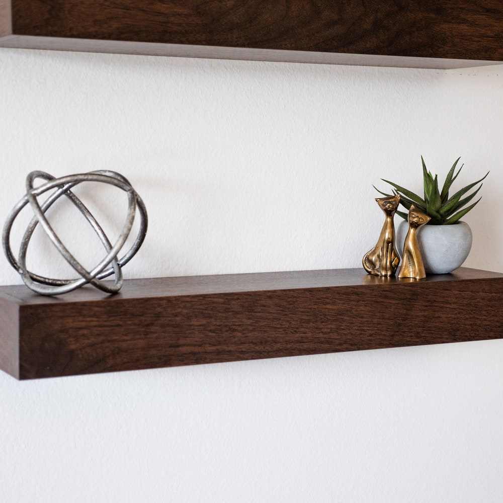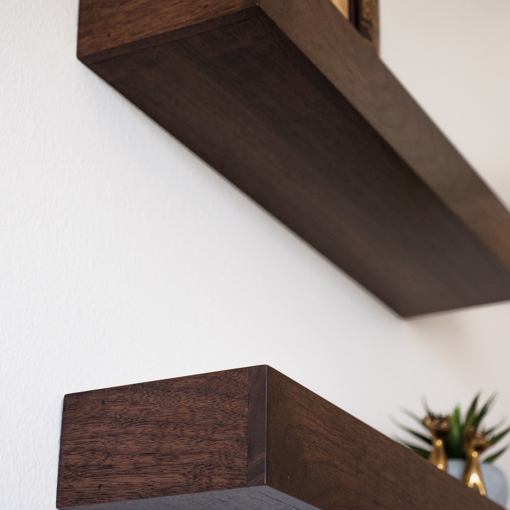 Walnut Floating Shelf, Modern Floating Shelves, FREE SHIPPING, Custom Finishes, Genuine Hardwood, Contemporary Design, Dark Stain