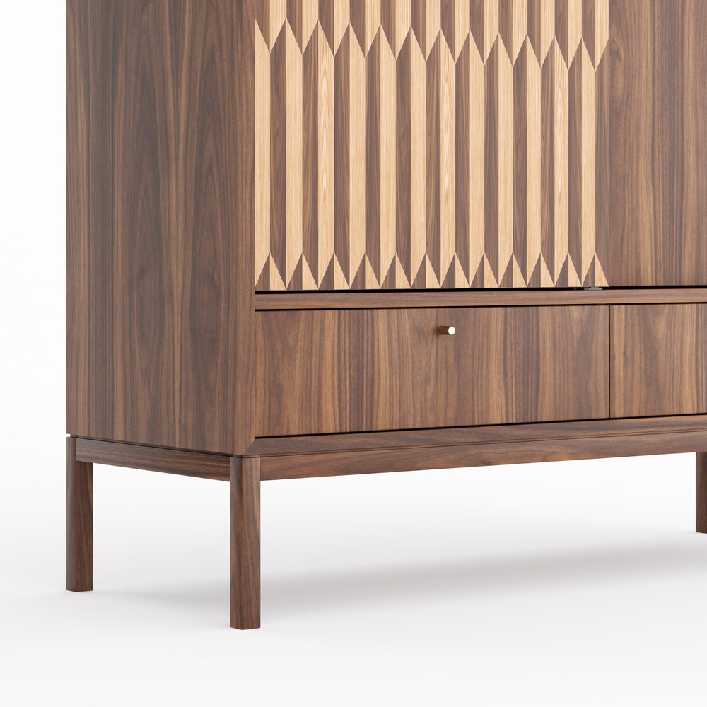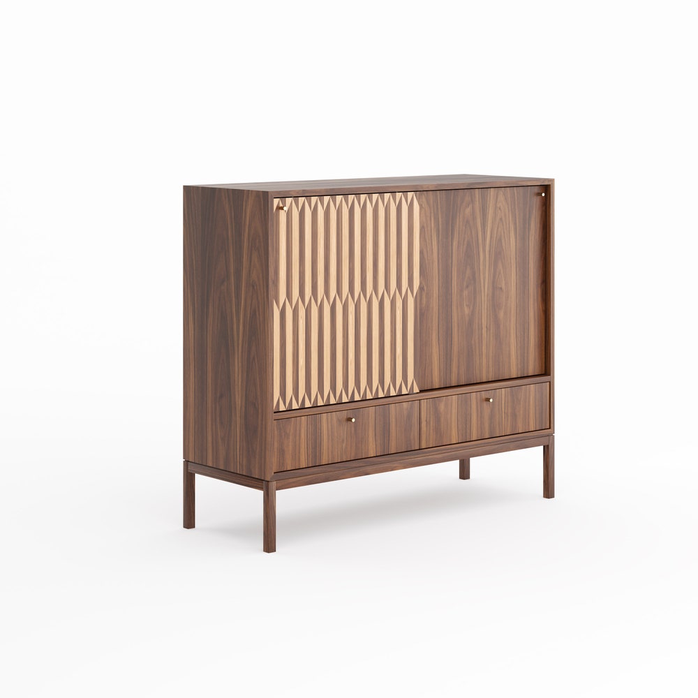 Sideboard, made of solid American walnut wood and wood covered with natural American walnut veneer.