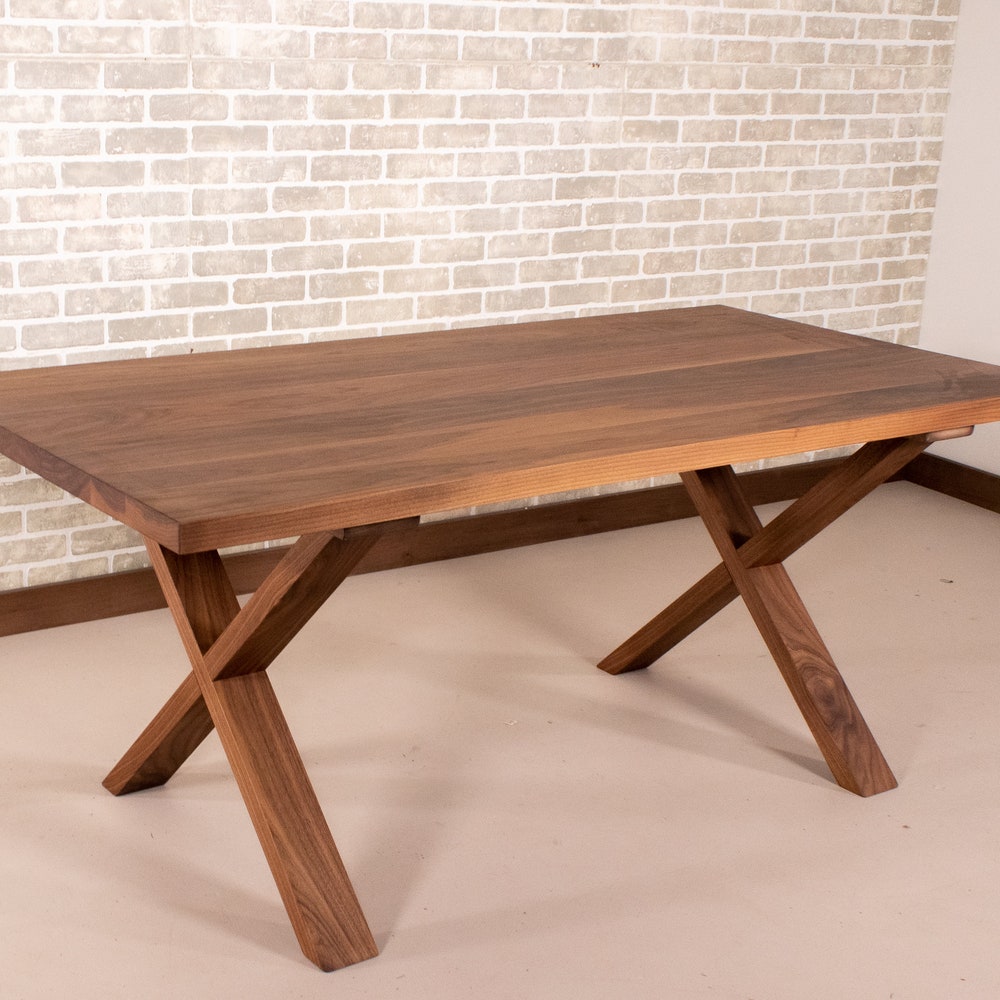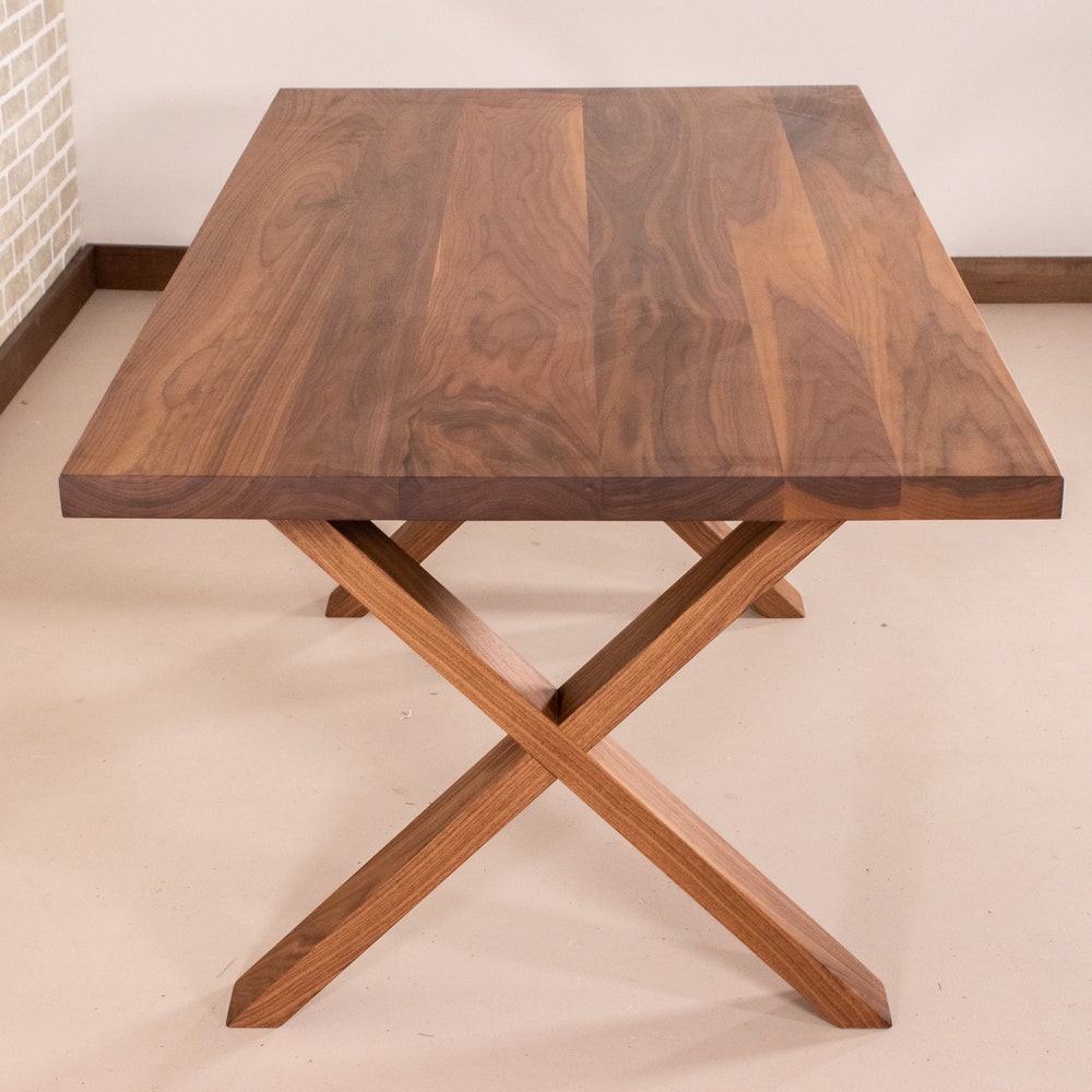 This walnut kitchen table packs a ton of style! It’s made of solid walnut and the design of the X legs gives the table a modern look. We build every table to order so there are many ways to make this table perfect for you.