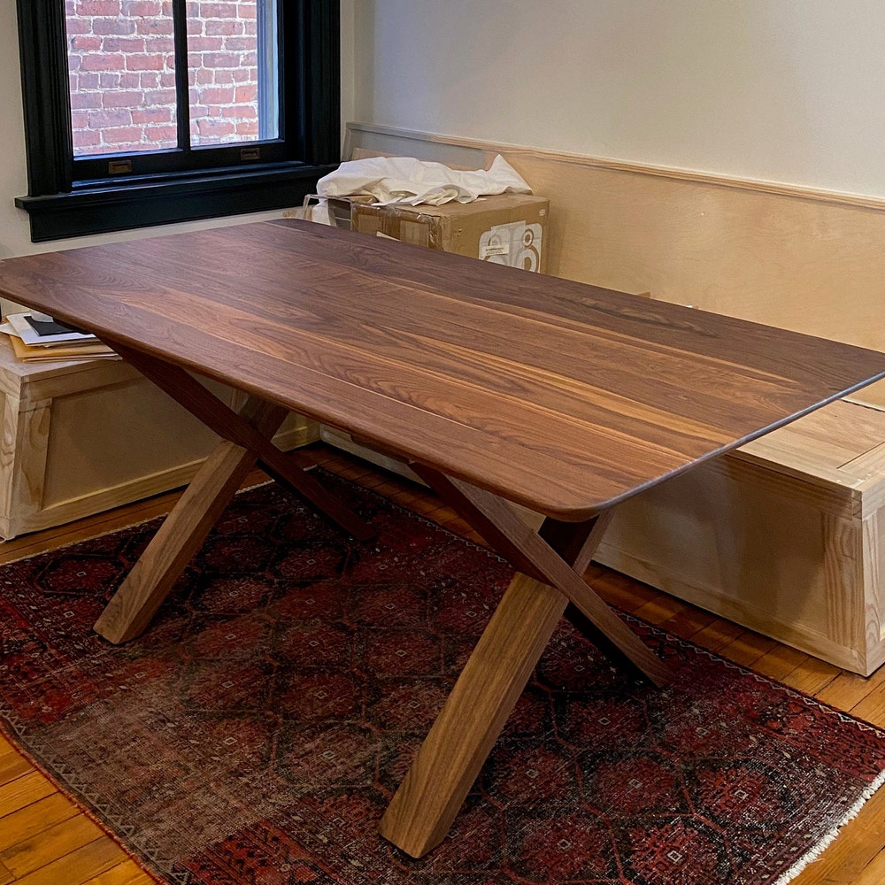 Walnut Kitchen Table, Walnut Table for Eat-In Kitchen, Black Walnut Dining Table on Flat Walnut X Legs, Modern Farmhouse Kitchen Table