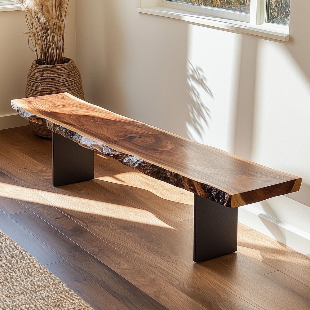 Because we use individual, handpicked walnut slabs, no two benches are exactly the same. While the bench you receive may differ slightly from the one pictured, this only adds to its charm—your bench will be a one-of-a-kind piece, even more beautiful in person. The natural wood variations ensure that your bench is a unique work of art, guaranteed to stand out in any space.