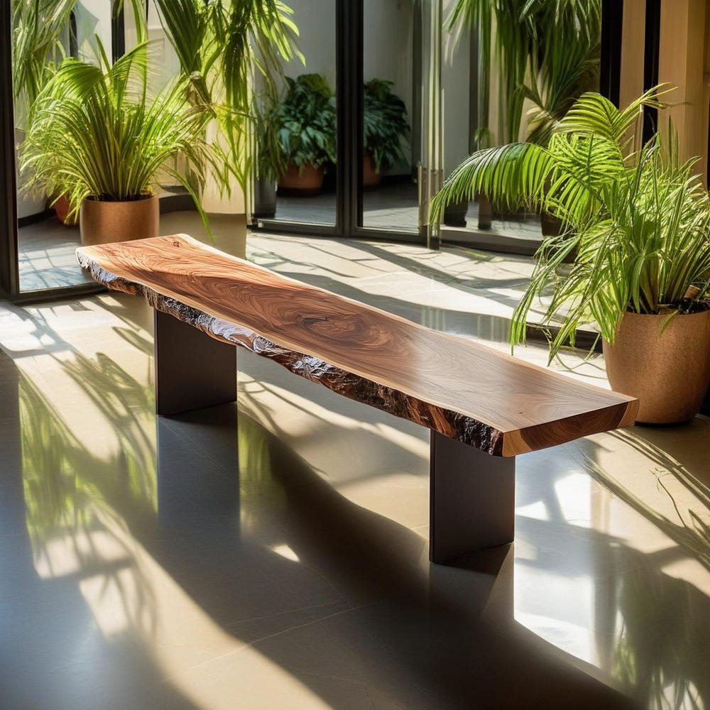 Walnut Live Edge Bench, Rustic Live Edge Bench, Entryway Bench, Live Edge Bench, Hallway Bench