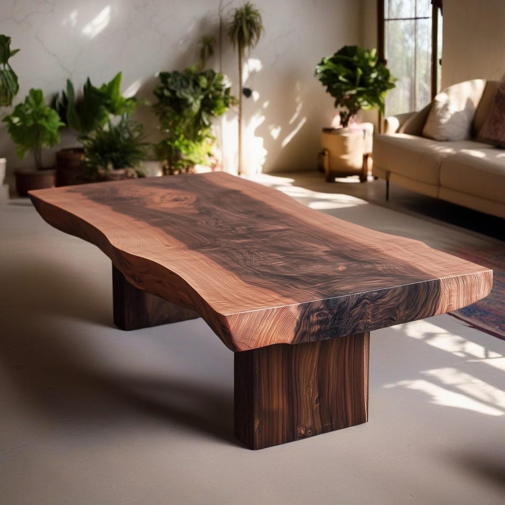 Because we use individual, handpicked walnut slabs, no two tables are exactly the same. While the table you receive may differ slightly from the one pictured, this only adds to its charm—your table will be a one-of-a-kind piece, even more beautiful in person. The natural wood variations ensure that your coffee table is a unique work of art, guaranteed to stand out in any space.