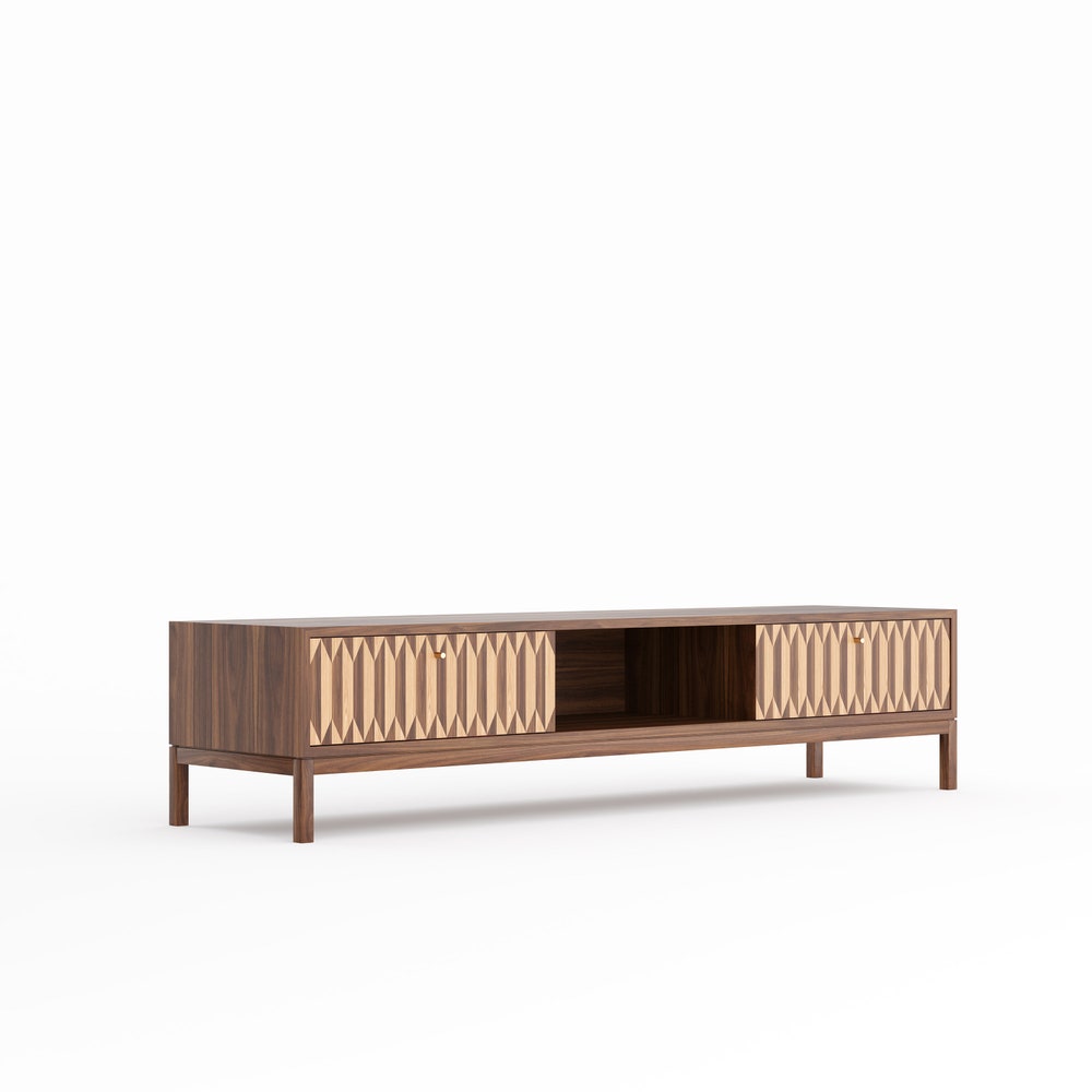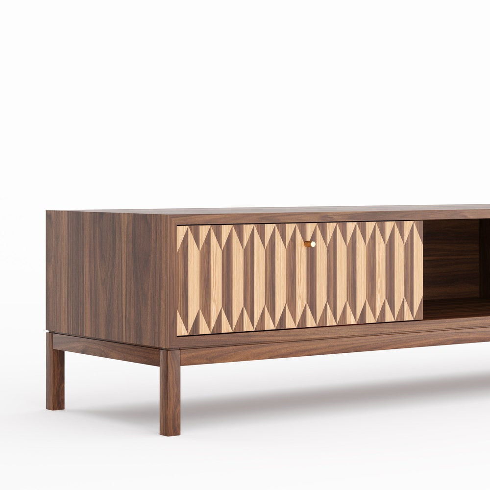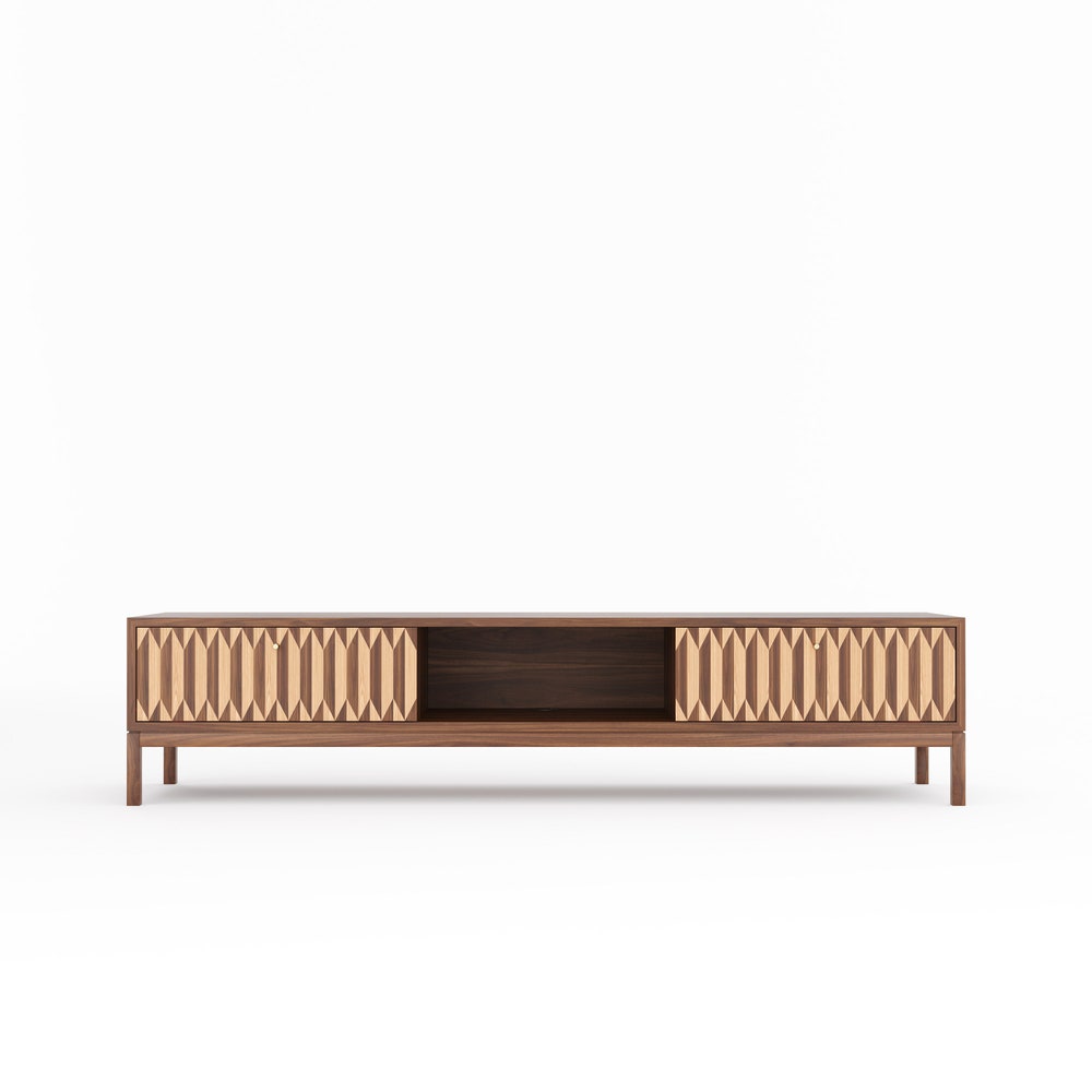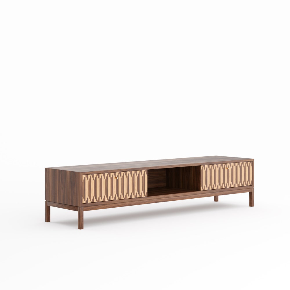 Lowboard made of solid American walnut wood and wood covered with natural American walnut veneer.