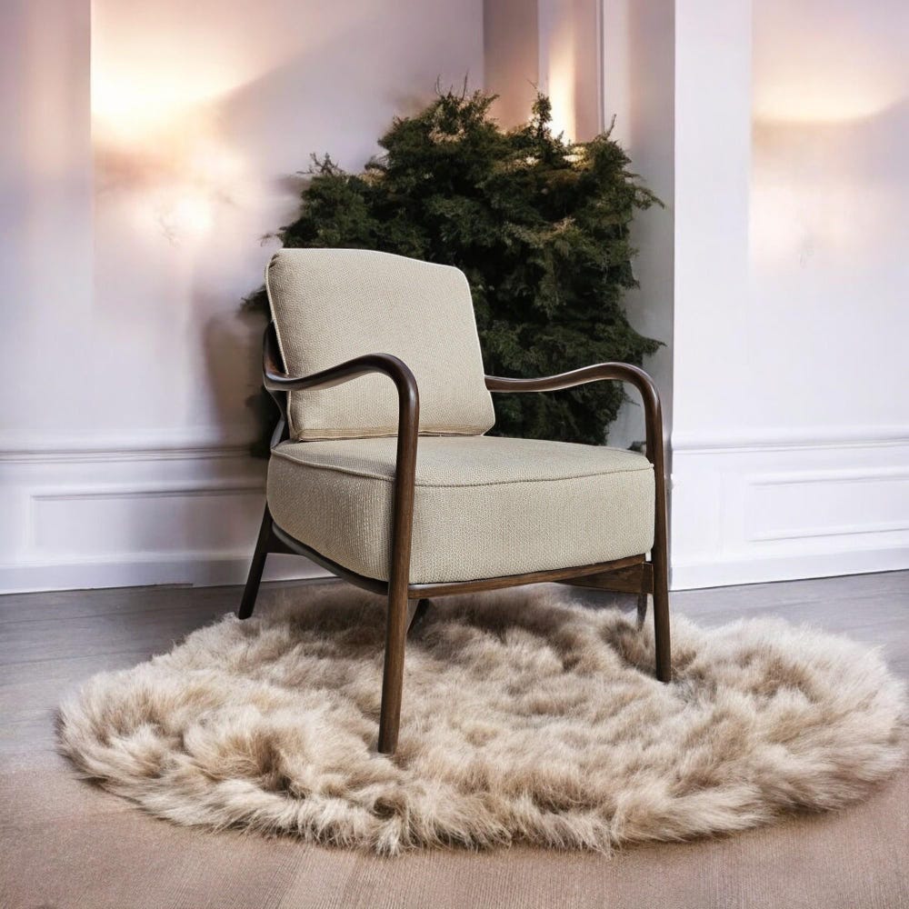 Walnut Lounge Chair with Cozy Sherpa Accent – Solid Wood Bergere for Living Room & Workspace, Customized Lounge Seating