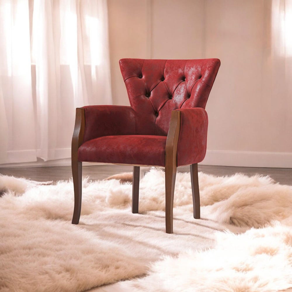 Walnut Lounge Chair with Cozy Sherpa Cushion, Solid Wood Customized Bergere Accent Chair for Living Room & Workspace