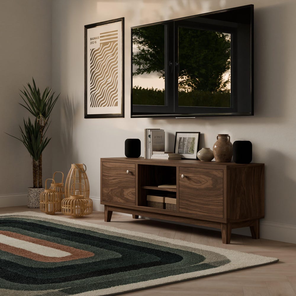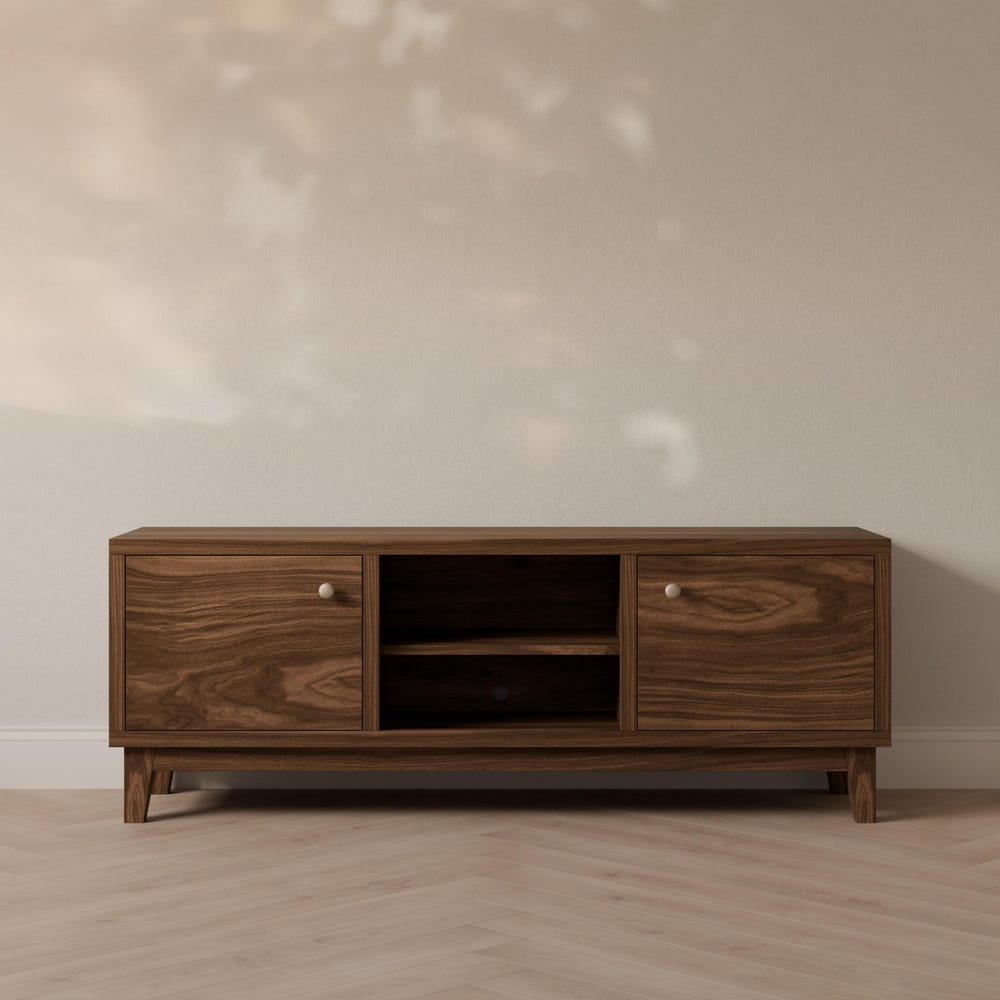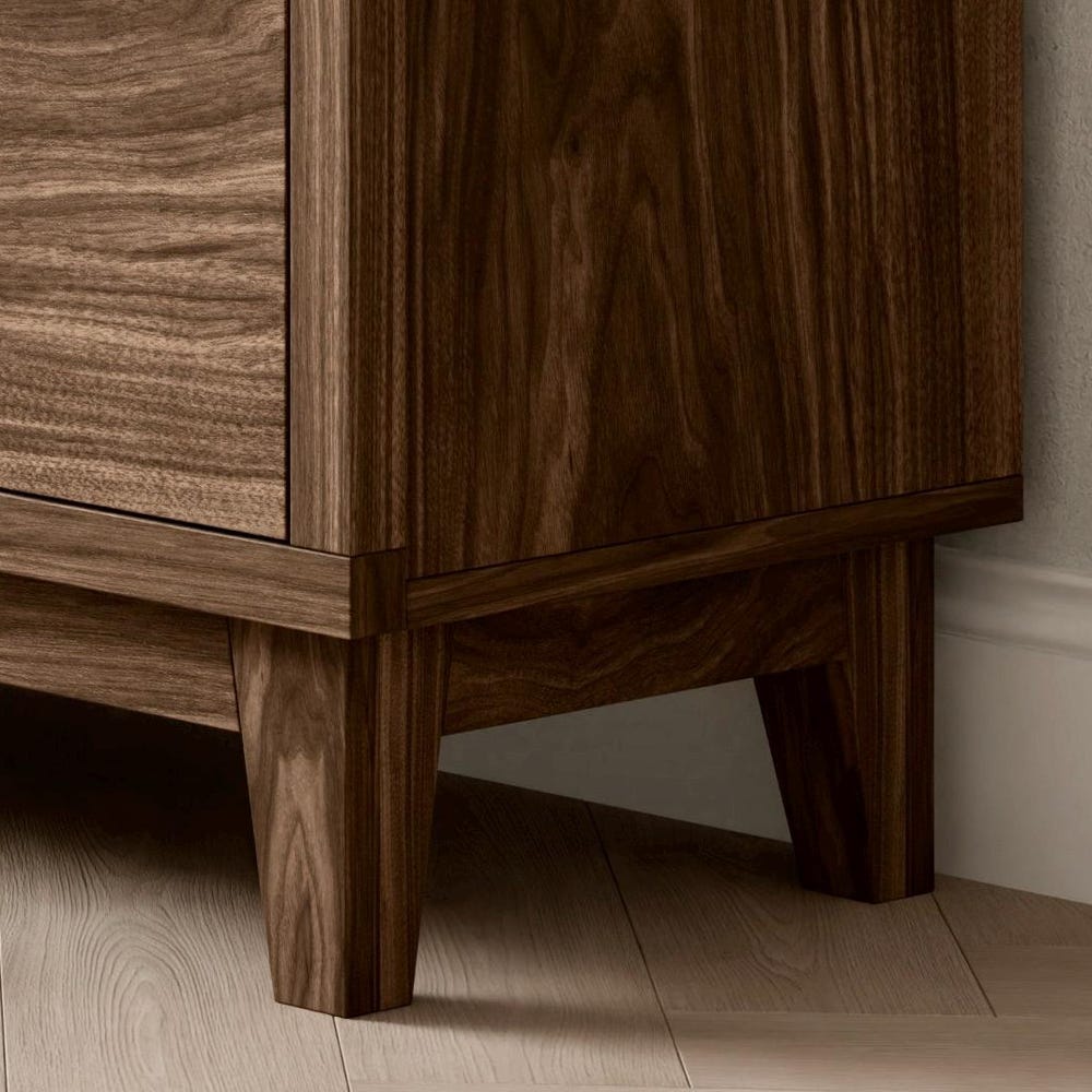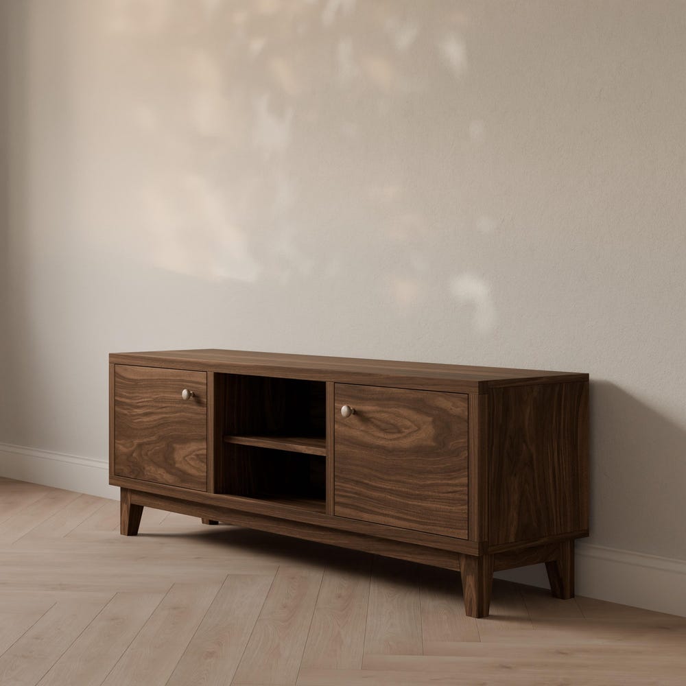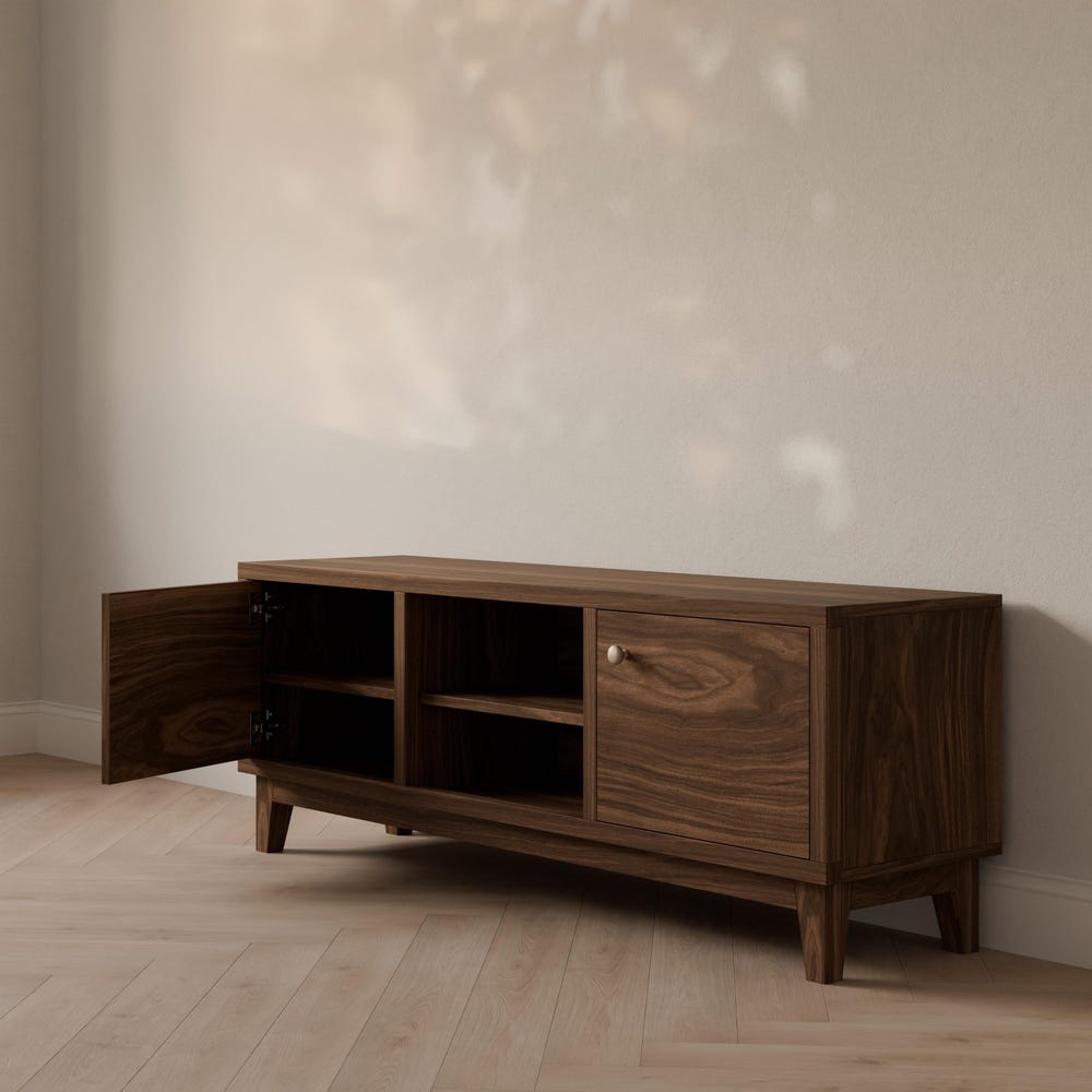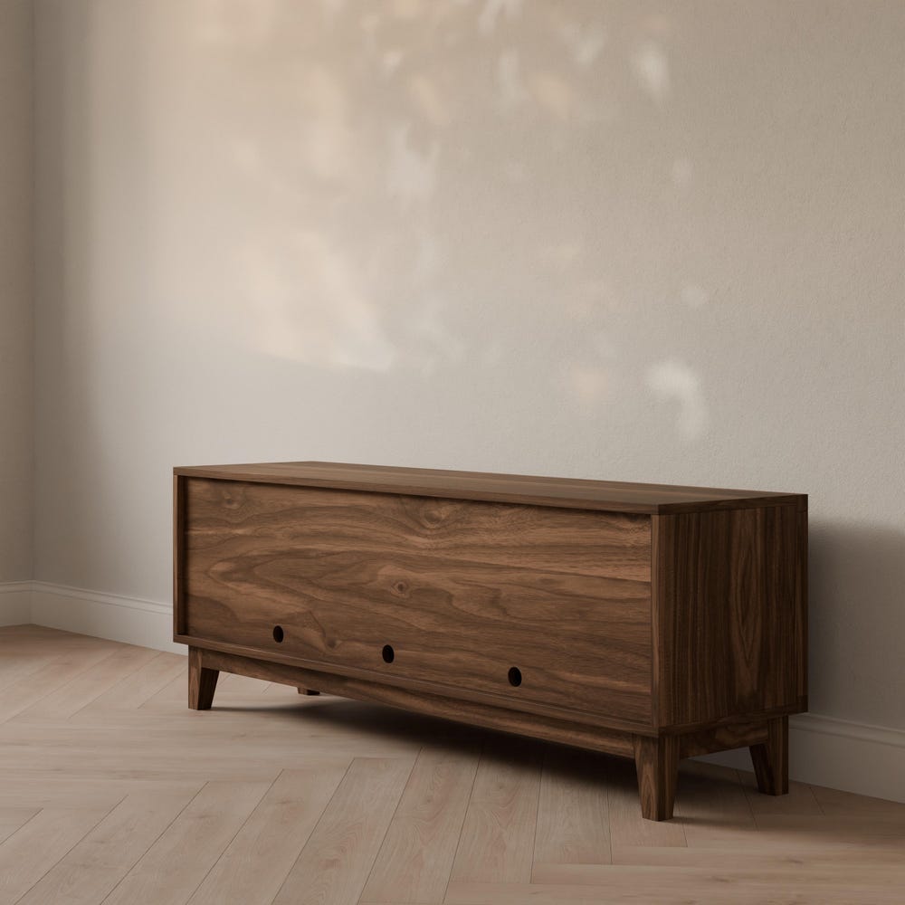 Arrives fully assembled at your door. Built from premium grade 3/4″ real Walnut veneer with a 1/2″ back, Solid Walnut face frame and legs, this Media Table is built for strength and longevity.