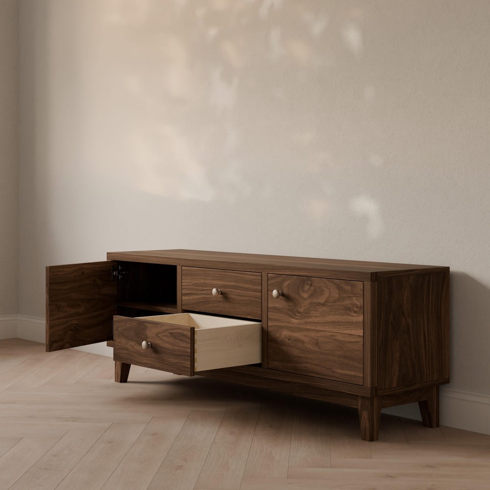Walnut Media Cabinet w/ Soft-Close Drawers and Doors
