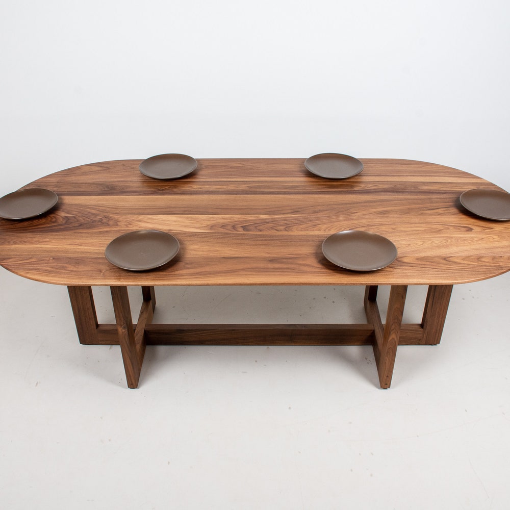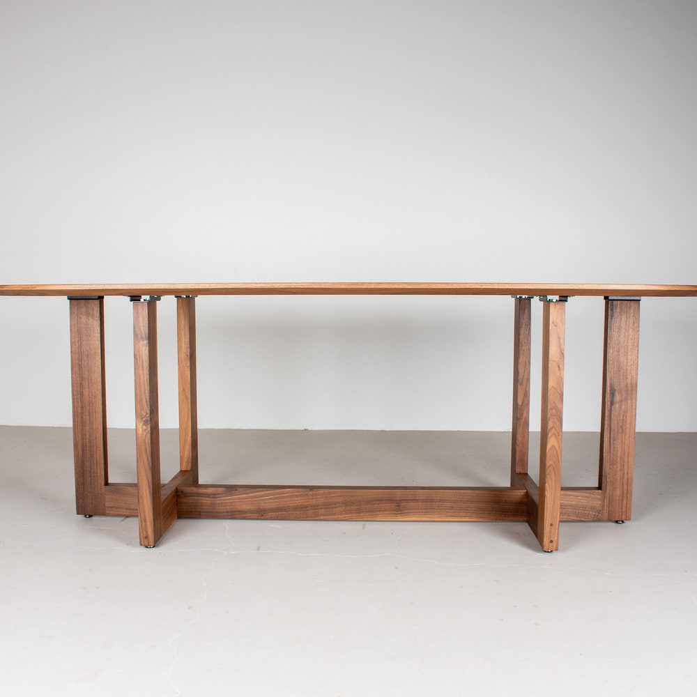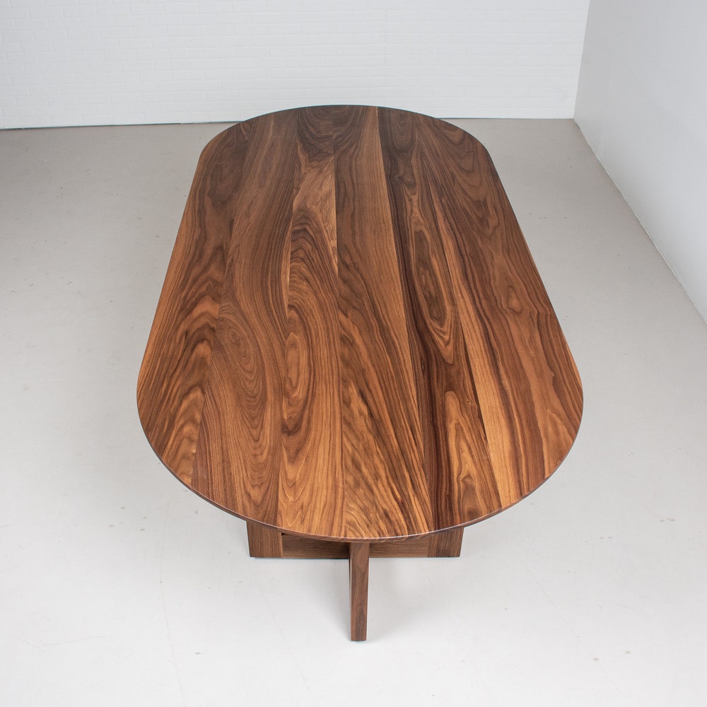 Walnut MidCentury Dining Table, Modern Harvest Table, Oval Dining Room Table on Double Cross Pedestal Base, Large Oval Trestle Table,