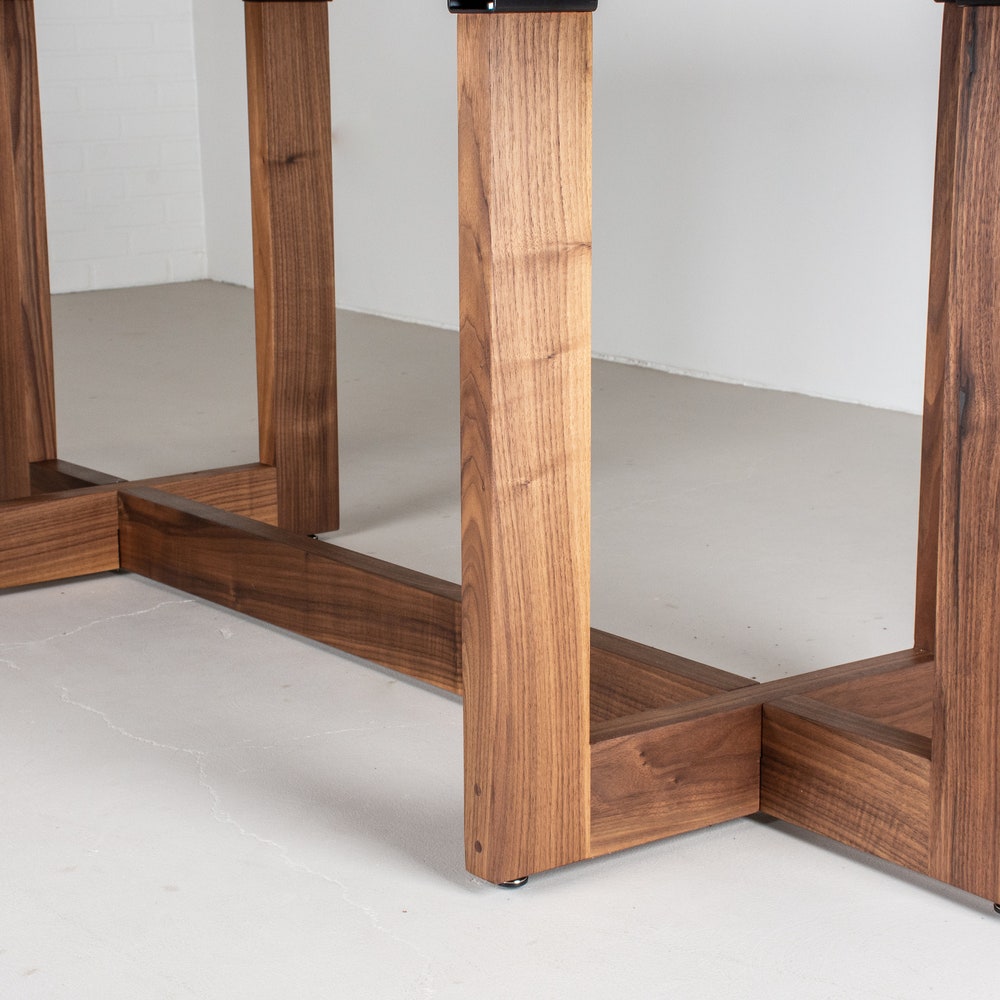 This walnut midcentury dining table is a reinterpretation of the classic harvest table. The 42” x 96” size we photographed seats 8-10 people. Because we build each table to order, we can build your table in exactly the size you need. If your size isn’t listed or if you have any questions, message us. We’re here to help!