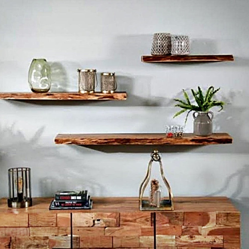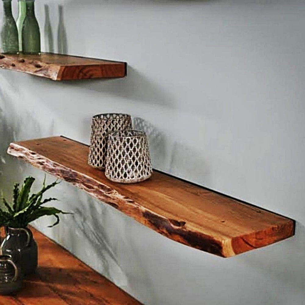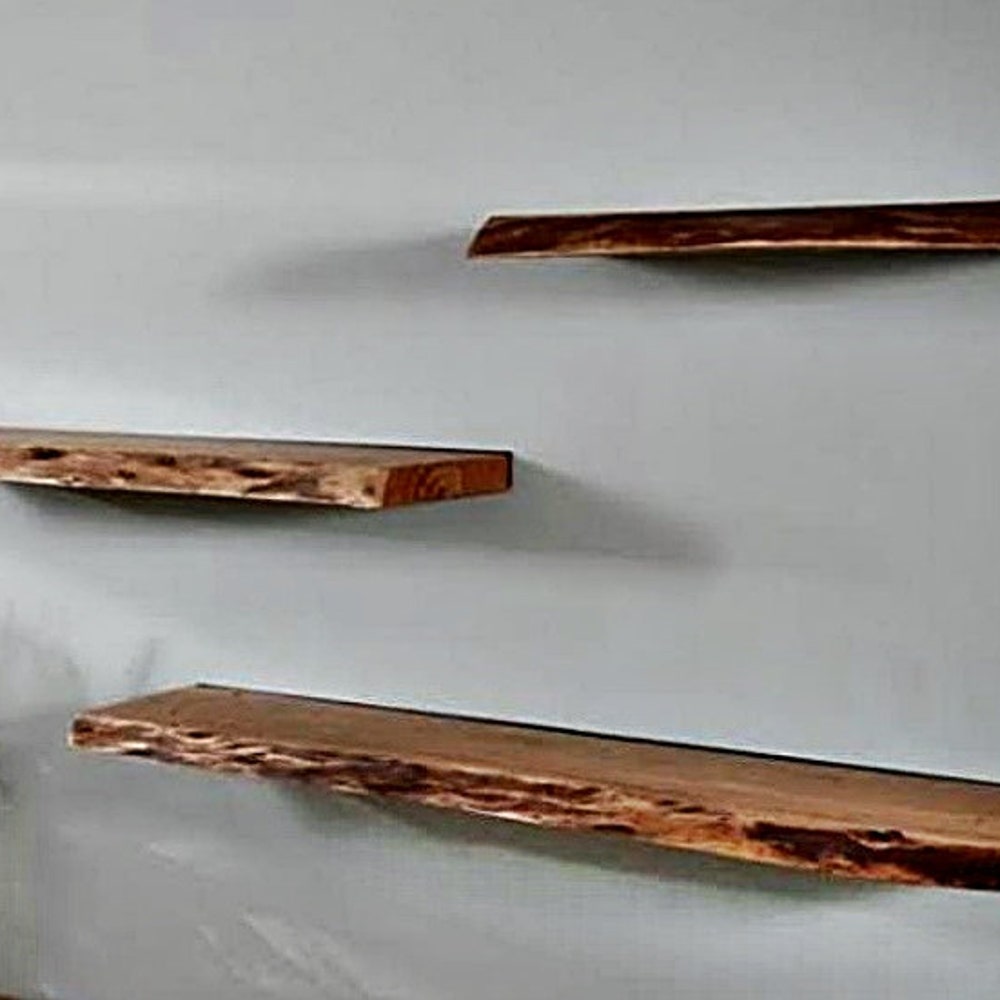 Walnut Natural Edge Floating Shelves, Custom Size Live edge, Floating Wall Mounted Floating Shelf
