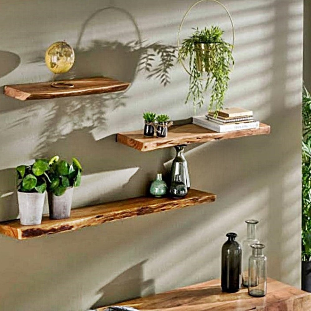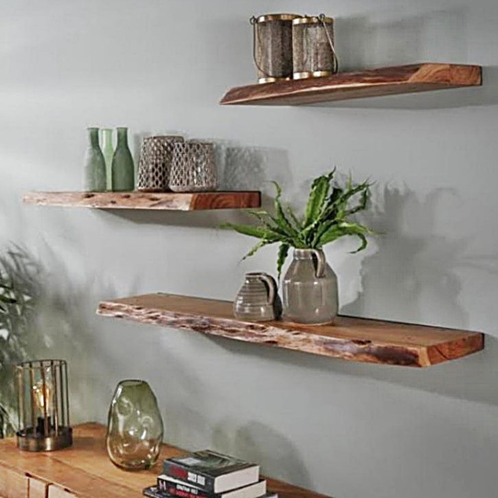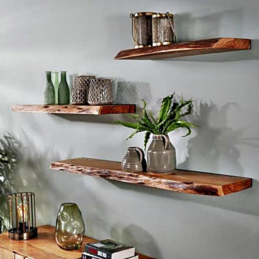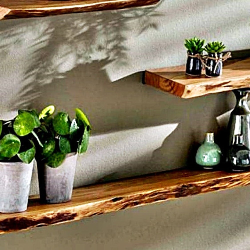Walnut Natural Edge Floating Shelves, Custom Size Live edge, Floating Wall Mounted Floating Shelf