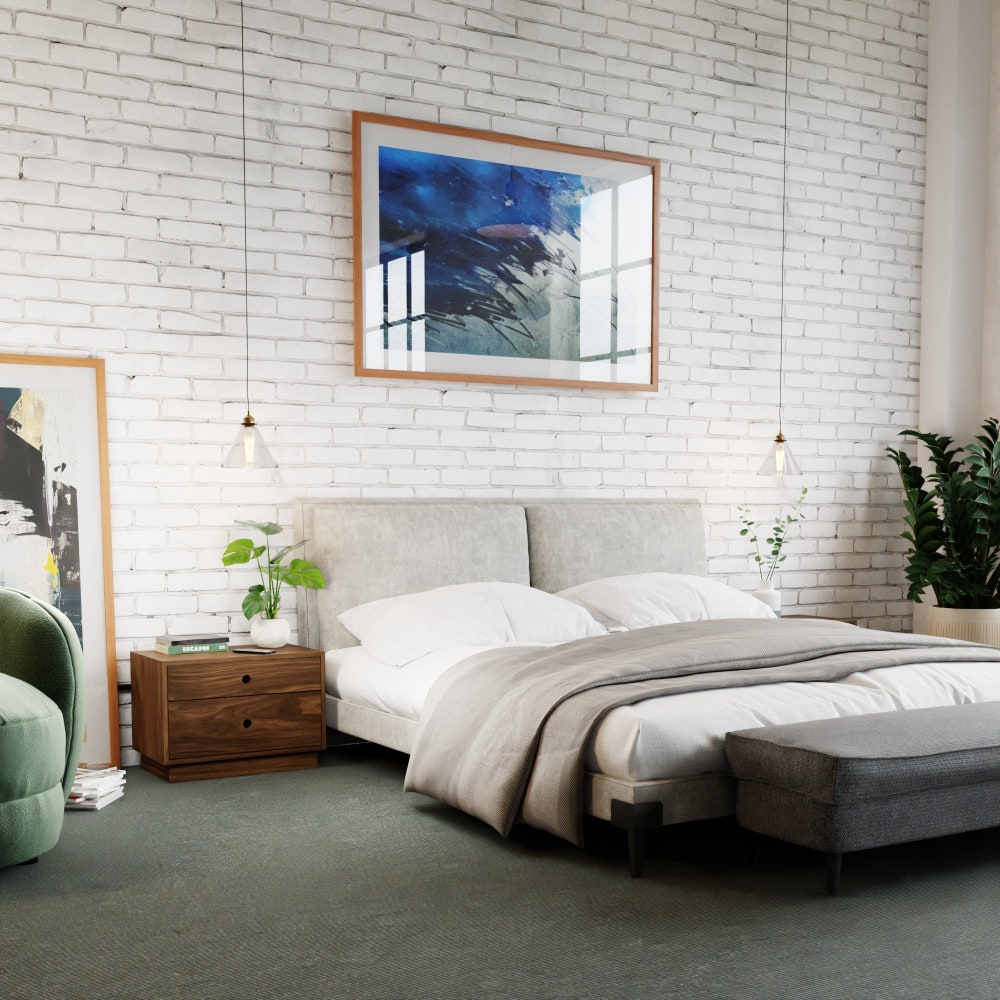 Walnut Nightstand with Double Drawers, Freestanding