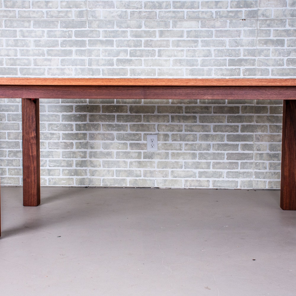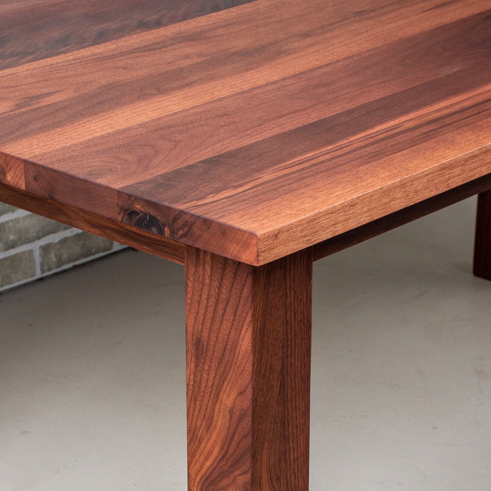 Bring a personal flair to your dining space with this walnut parsons table. The parsons table design creates a sturdy, classic table. For this table the walnut was finished with a spiced colored oil to highlight out the natural red tones in the wood. We build every table to order so there are many ways to make this table perfect for you.