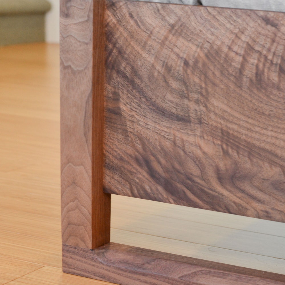 Handcrafted with non-toxic responsibly sourced materials in Seattle, WA to be a lifetime purchase. The Alki Bed is sleek, and efficient, with exposed bridal joints, and an optional slanted headboard.