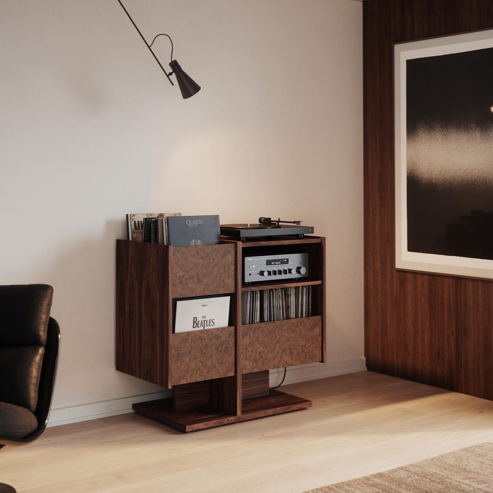 Walnut Record Player Stand with vinyl storage in Mid Century Modern Style, Media Console, Turntable Stand – LINDE