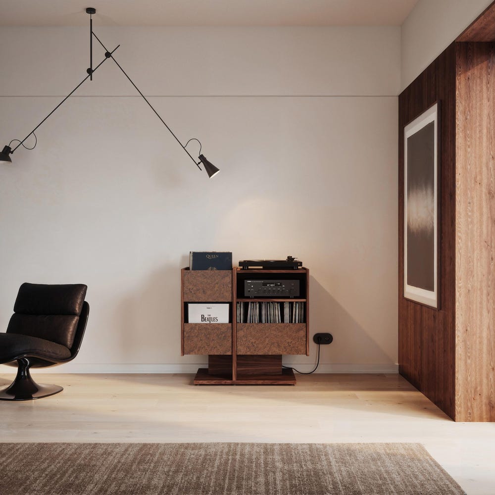 Perfect as media console, record player stand and vinyl storage for music enthusiasts.