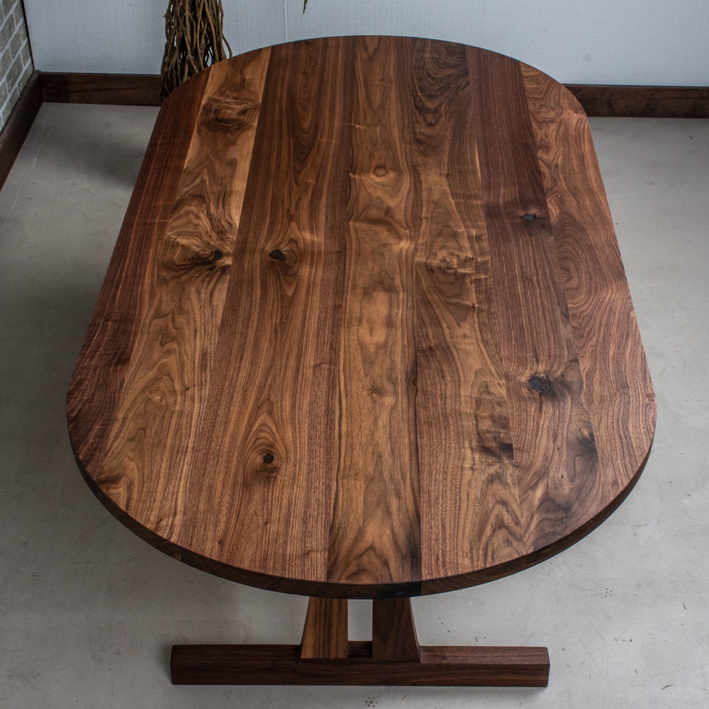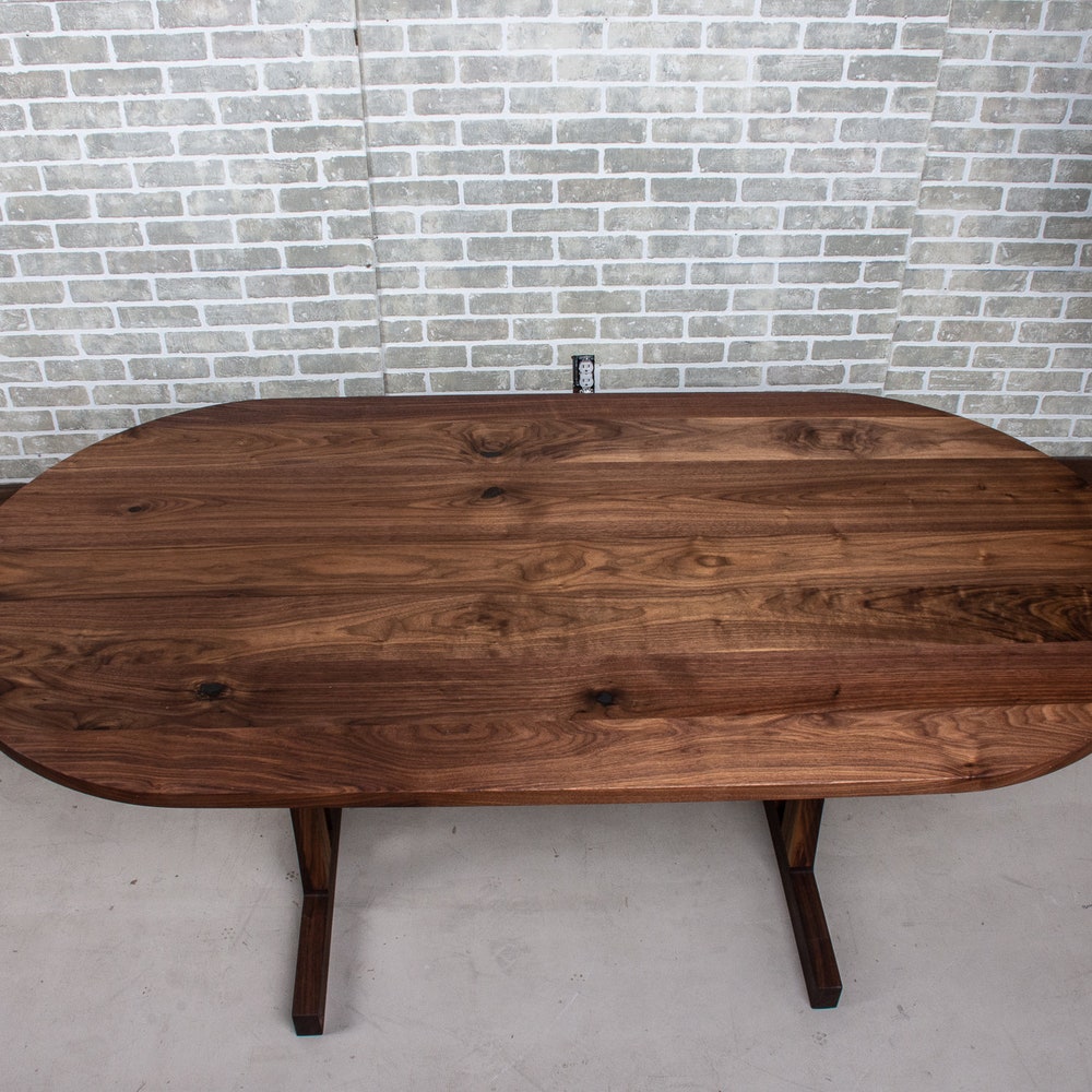 Walnut Trestle Table, Oval Dining Table on Modern Trestle Base, Custom Walnut Dining Table, Walnut Oval Dining Table, Pedestal Dining Tables
