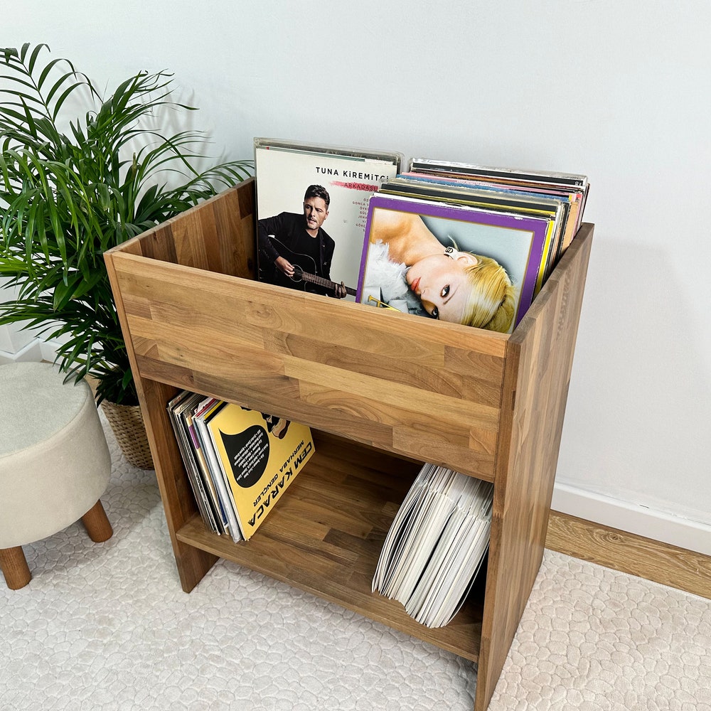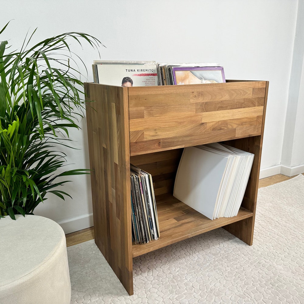Walnut Vinyl Console, Vinyl end table, Vinyl Shelf, Large Vinyl storage