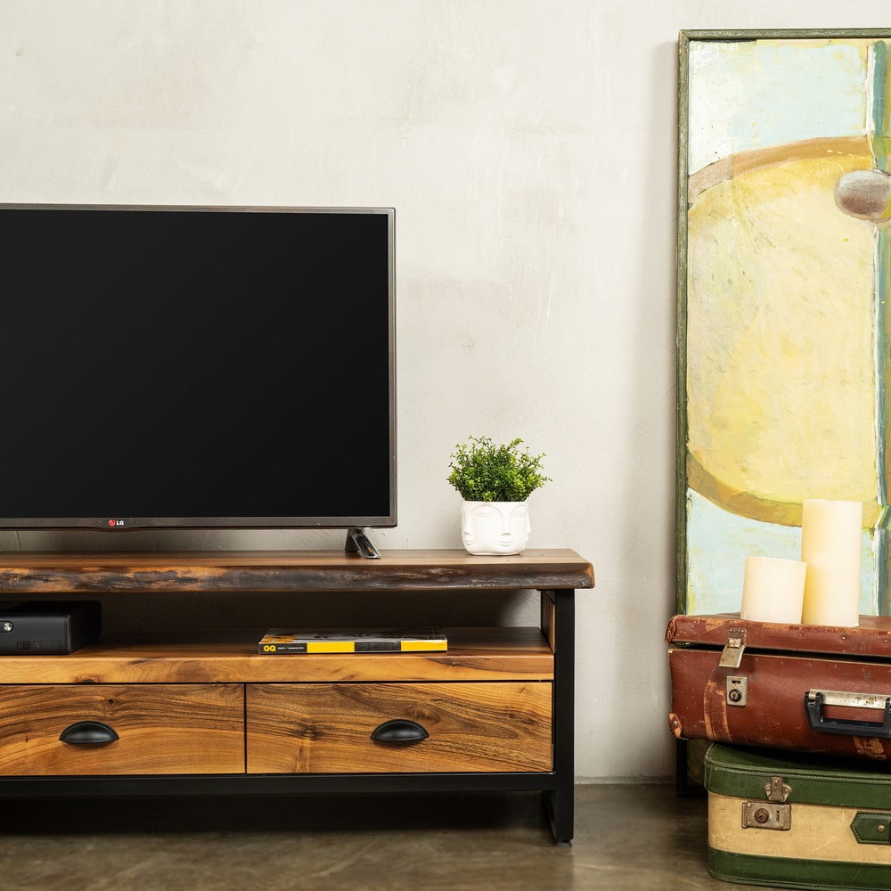 This is a piece of natural luxury Console Tables industrial for Your home. Made completely from solid Walnut. Drawer tv unit is treated with natural Oil to highlight the wood and its pattern. Walnut is considered one of the strongest woods in nature with beautiful light beams in its pattern. The front face of the Farmhouse console is different for each product due to different wood patterns. Perfect for a home setting or as an office piece.A mid-century tv stand ideal for a modern, eclectic and traditional interior. the metal media console enriches interior providing warmth and light with a touch of the modern approach The piece is just as practical as it is beautiful.
