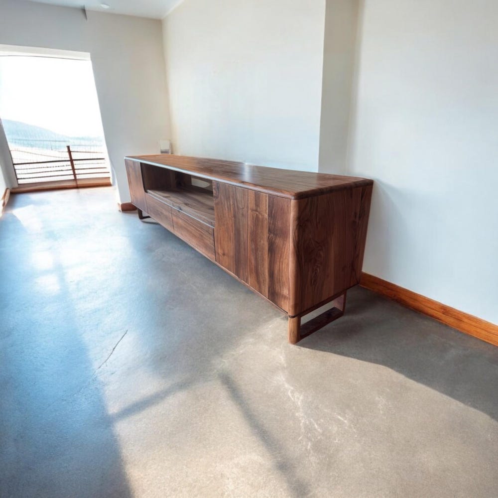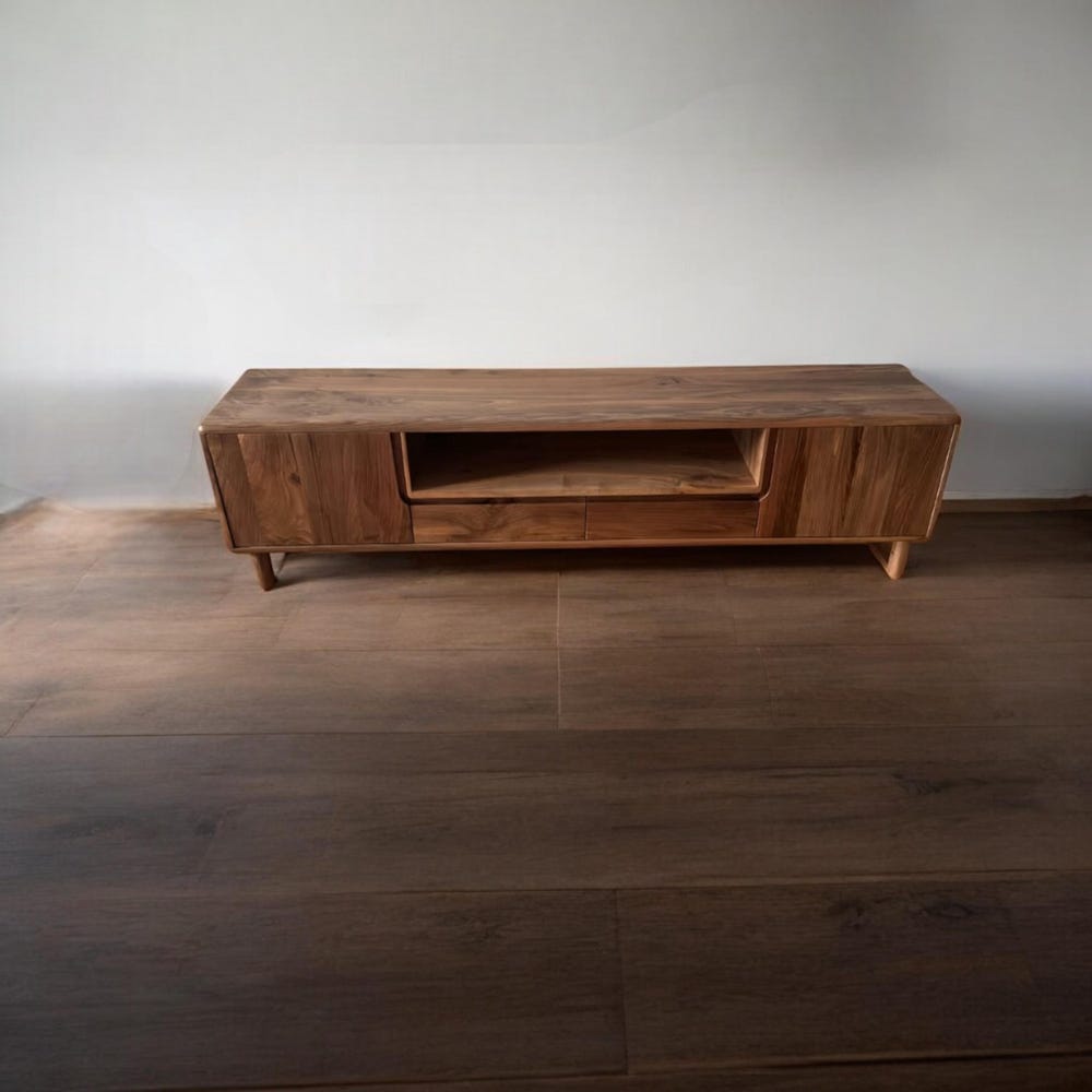 Natural Solid Wood and Metal Tv Unit, Walnut Wood TV Unit, Media Console and TV Storage, Rustic Style Tv Stand, Wooden TV Stand Cabinet