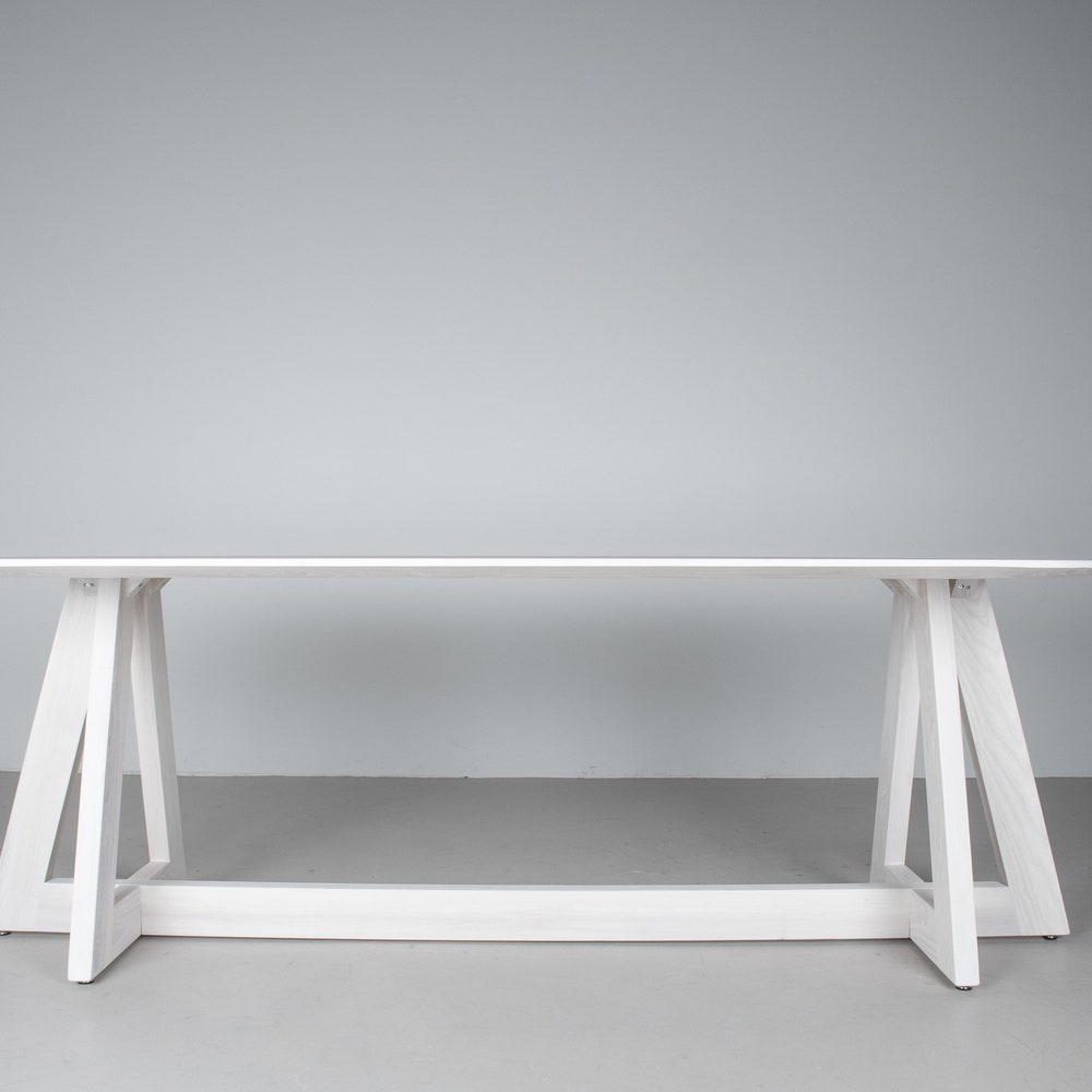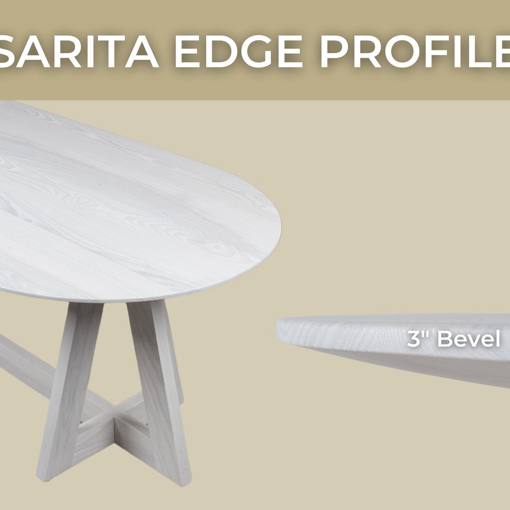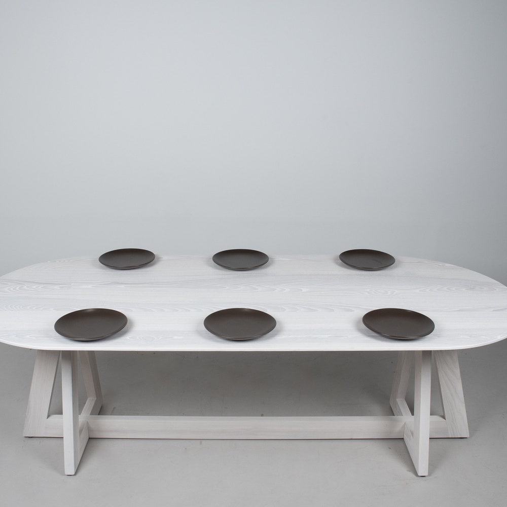 Brighten up your kitchen or dining room with an oval shaped white ash dining table. The white finish and the thinned sarita edge make the table feel light in the space. The racetrack shape makes it perfect for those high traffic areas, and the kelly base stays nicely out of the way of your chairs, making for a functional everyday table. We build every table to order so there are many ways to make this table perfect for you.
