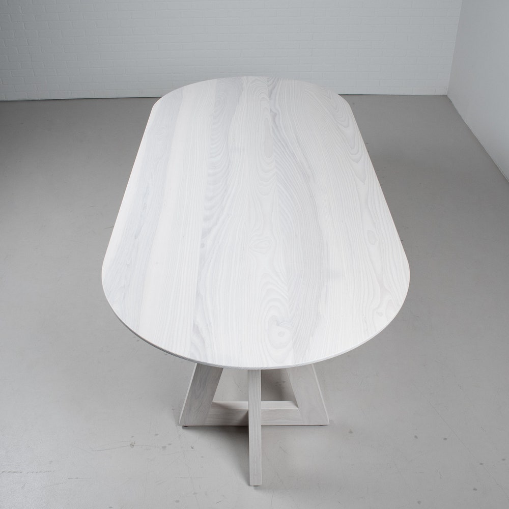White Ash Dining Table, Oval Wood Table on Cross Pedestal Base, White Wood Table for Kitchen or Dining Room, Oval Solid Wood Dining Table