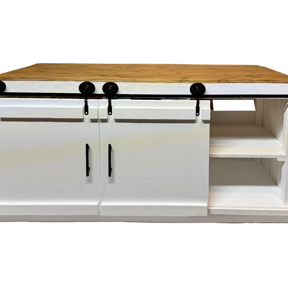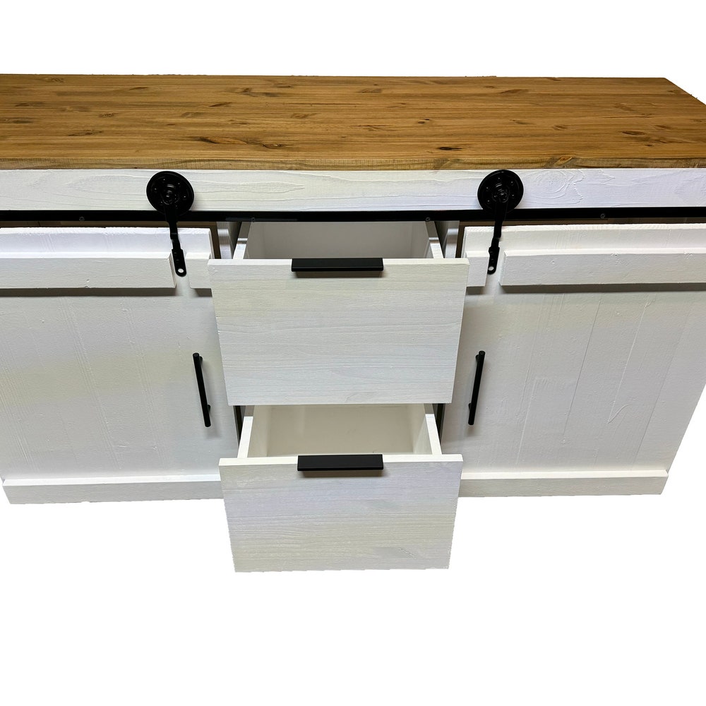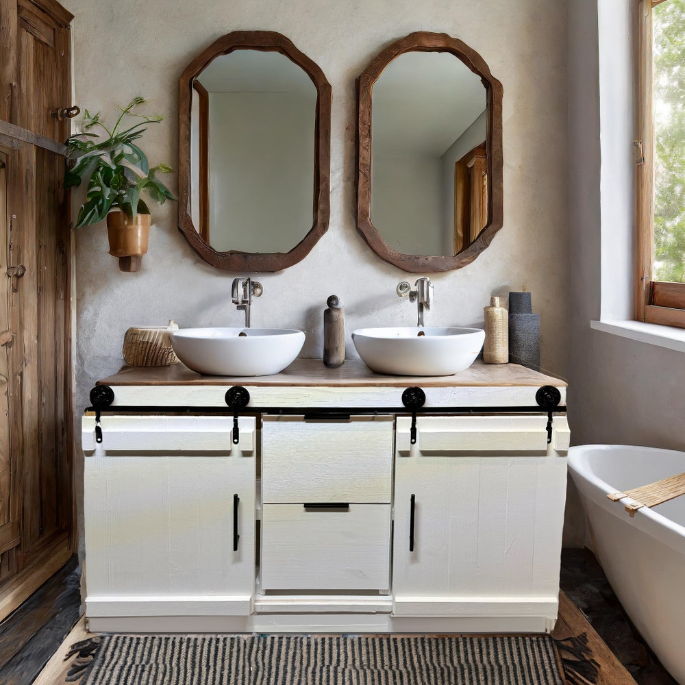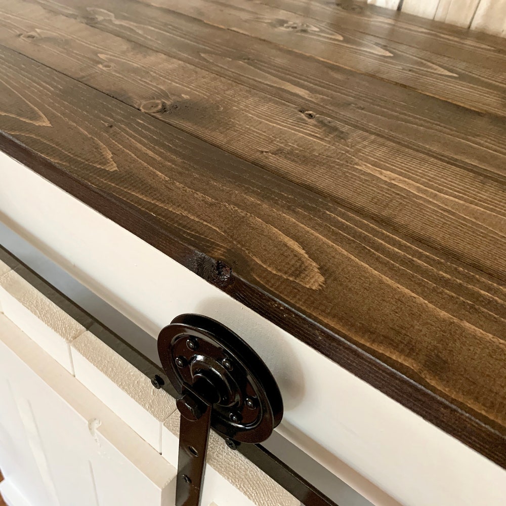WHITE BATHROOM VANITY with Barn Doors and Toe Kick for Double Sink Remodeling Farmhouse Cabinet Console Storage Shelf Washstand Gift