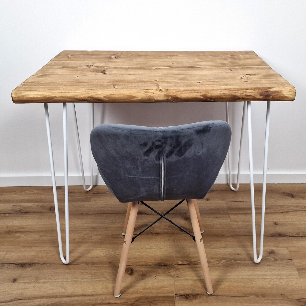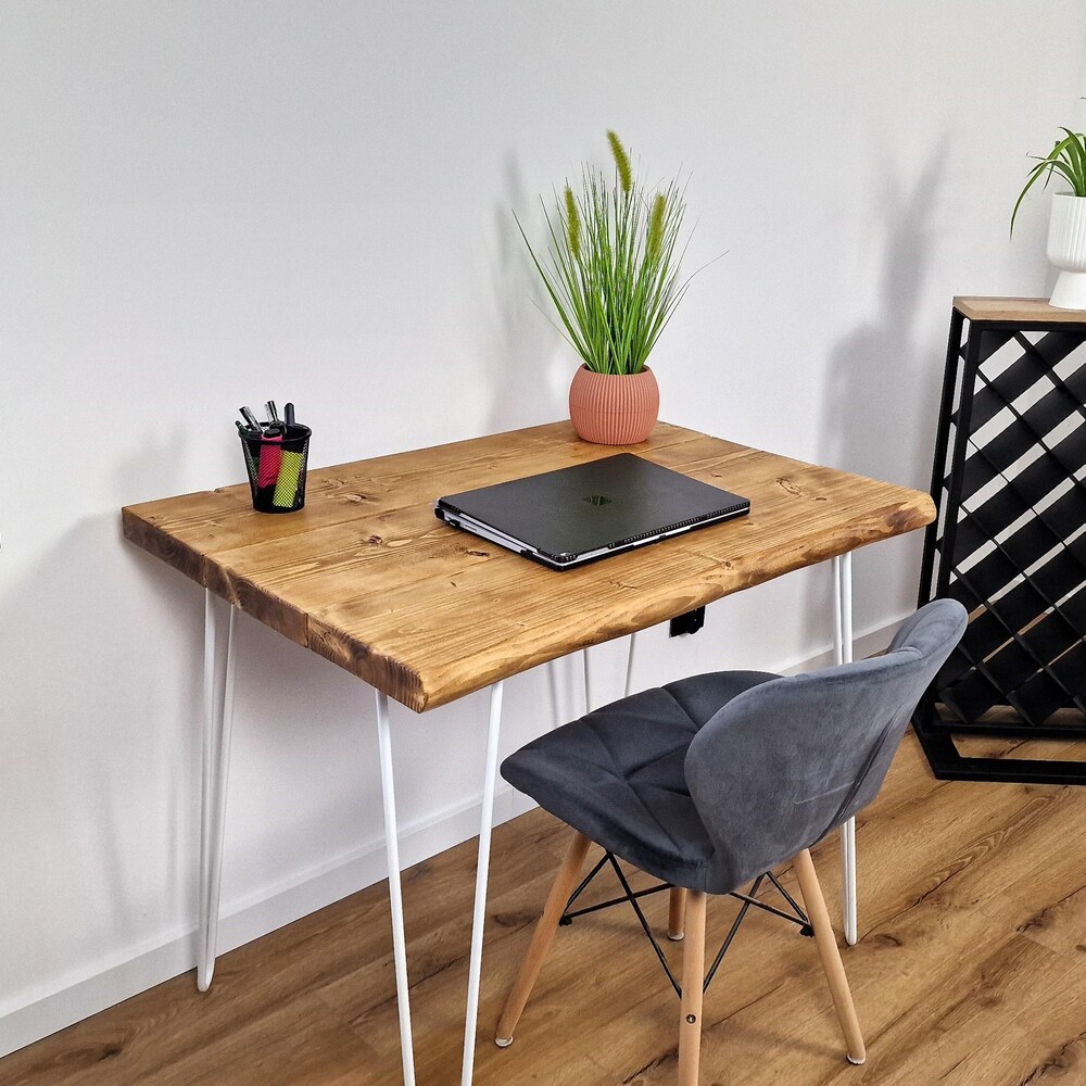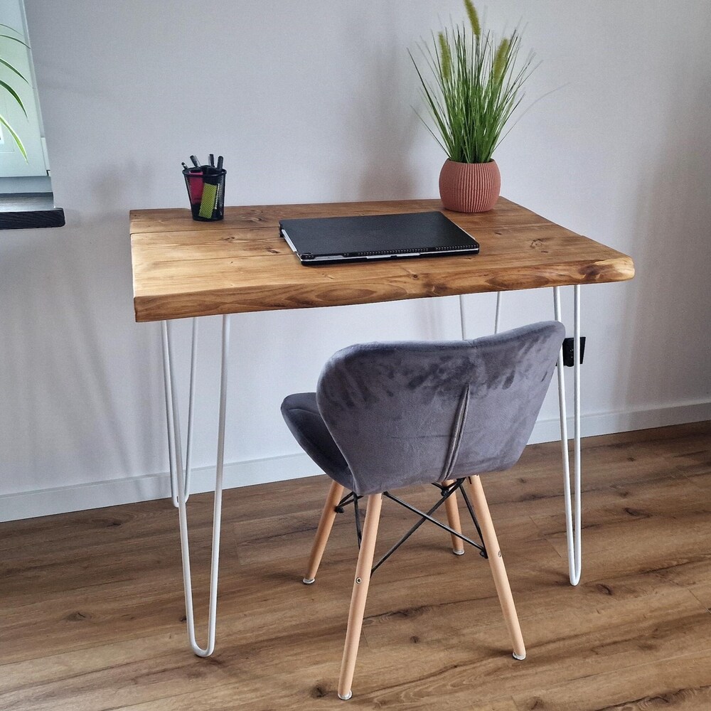 White Hairpin Legs Live Edge rustic Desk : Solid Wood Home Office Furniture, Kitchen and Dining Table, Reclaimed Multi-Board Design