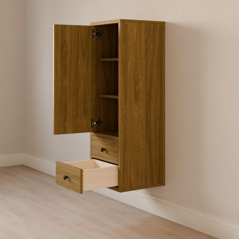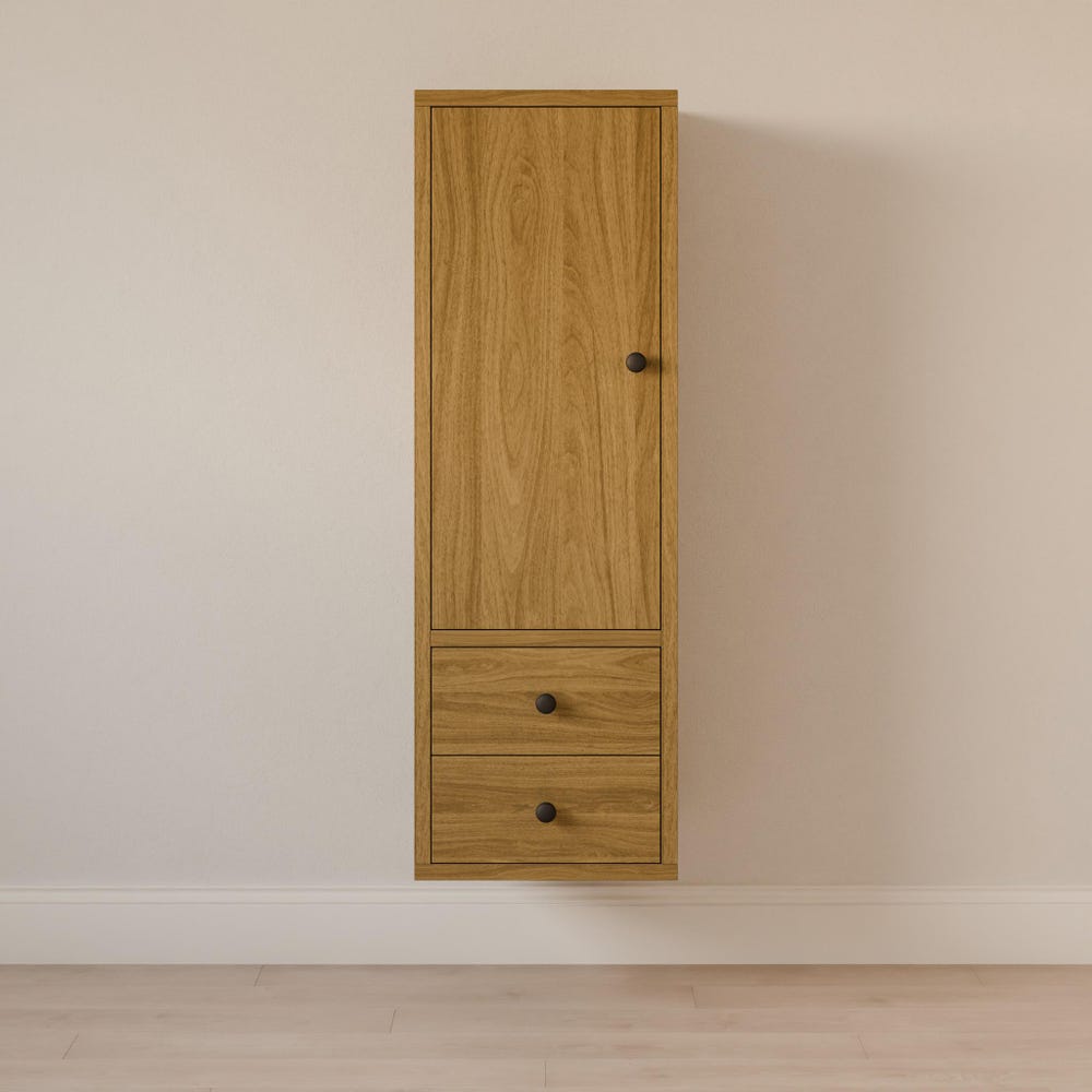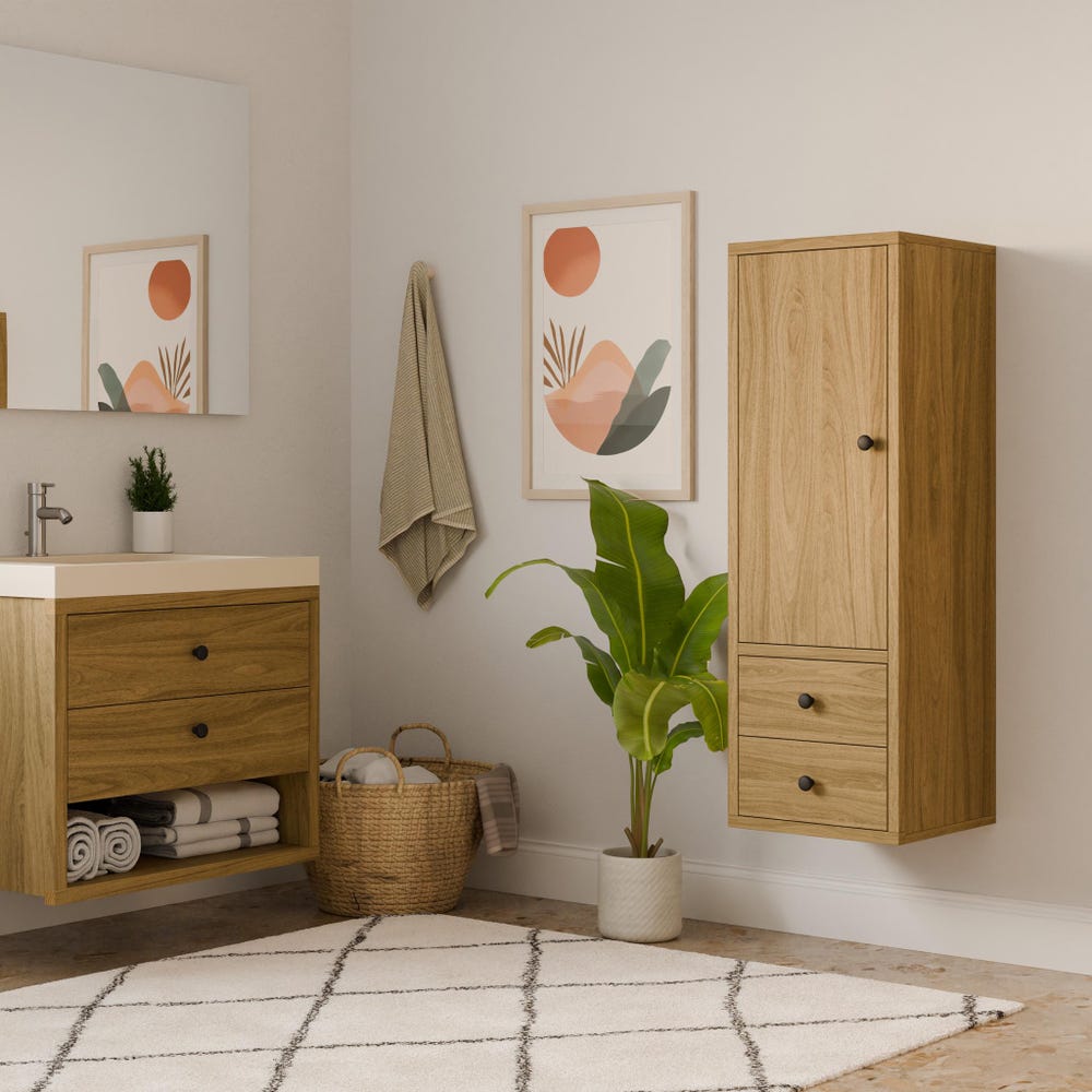 White Oak Bathroom Linen Storage Cabinet with Drawers