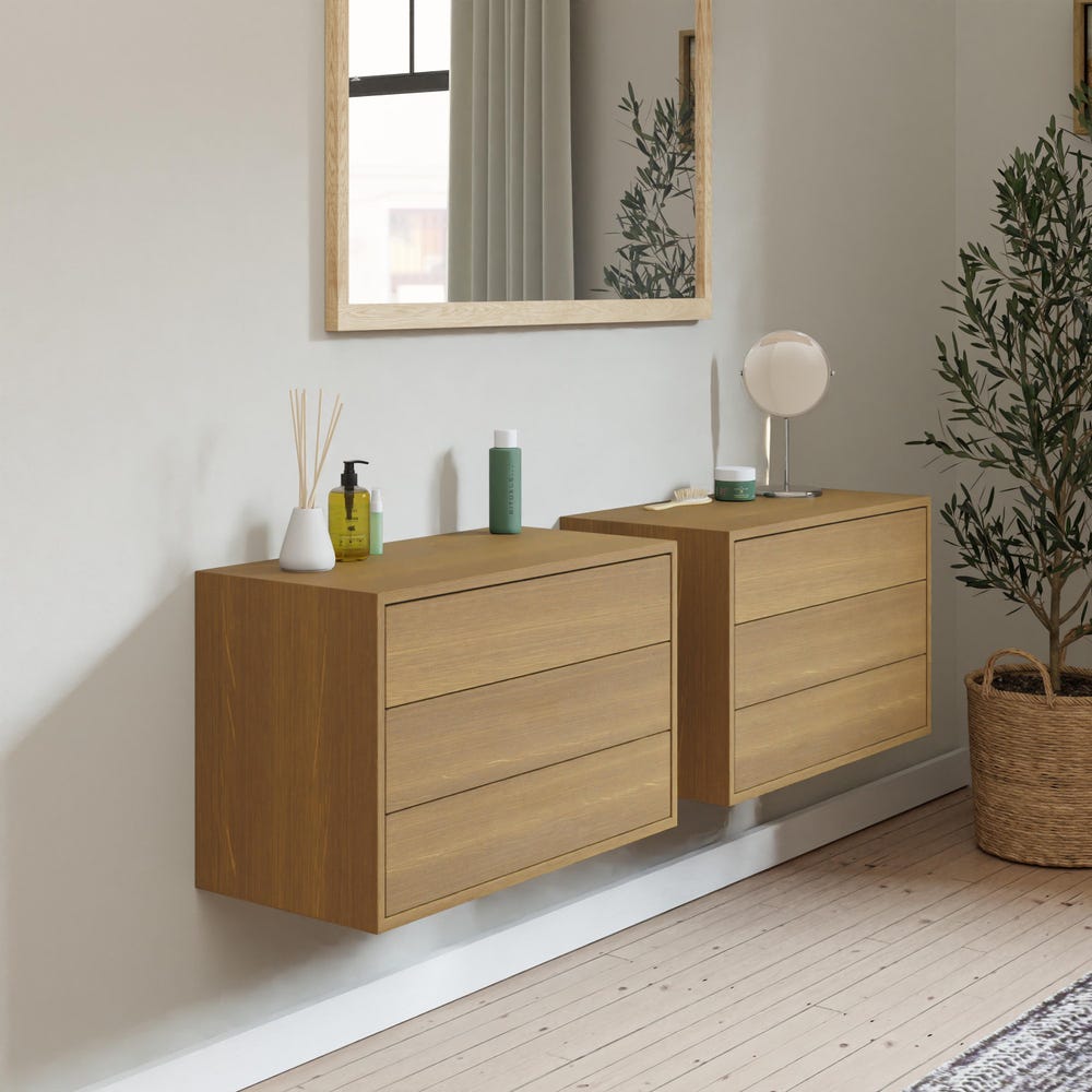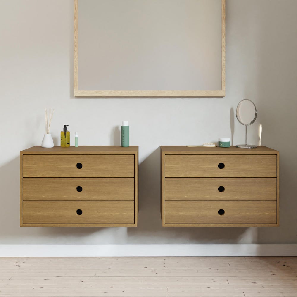 An oversized version of our bestselling nightstand, this floating Dresser is expertly built from solid White Oak grown, milled and built domestically.