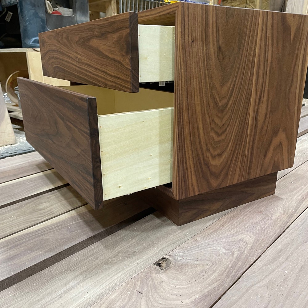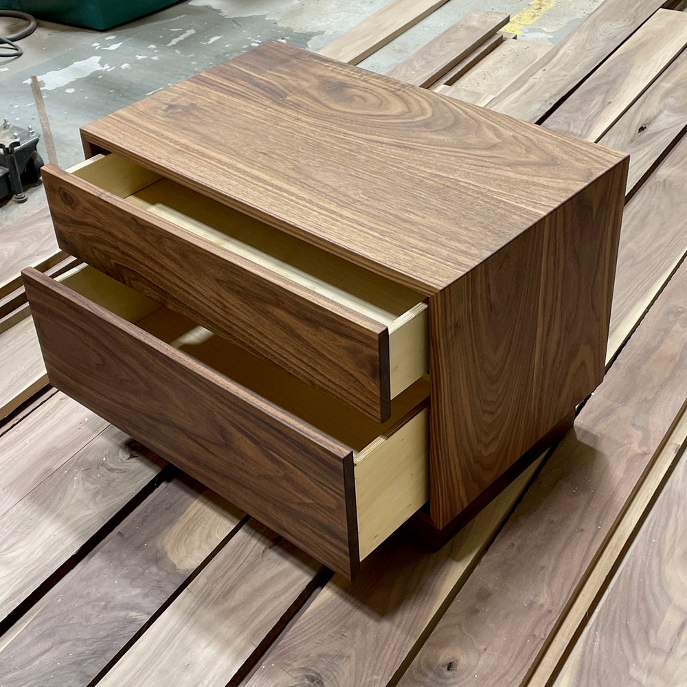 The drawers are built from Hard Maple with a solid White Oak front to match the nightstand.