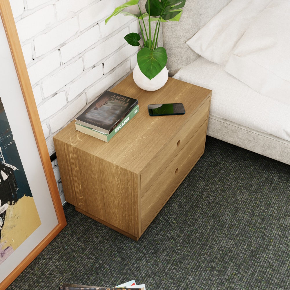 Be the first to review “White Oak Nightstand with Double Drawers, Freestanding”