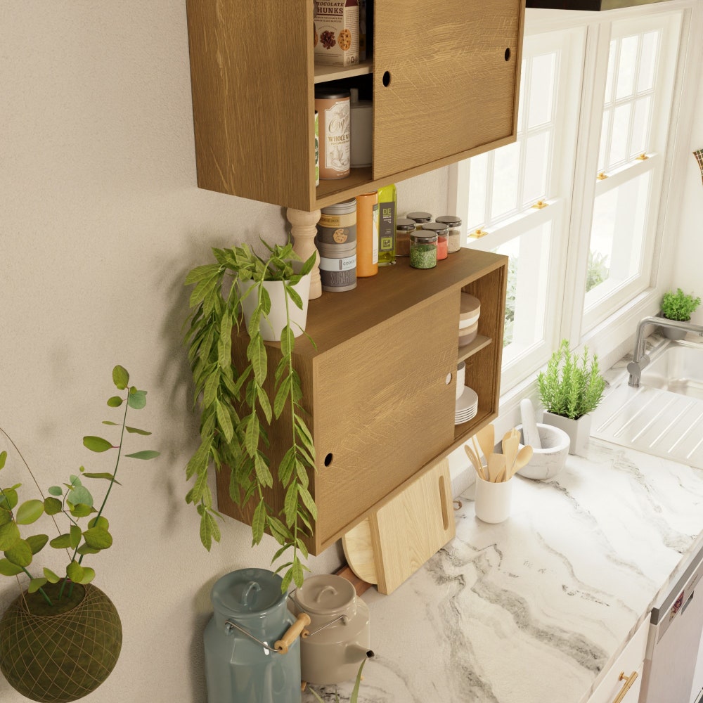 White Oak Storage Cabinet with Sliding Doors, Kitchen Cupboard